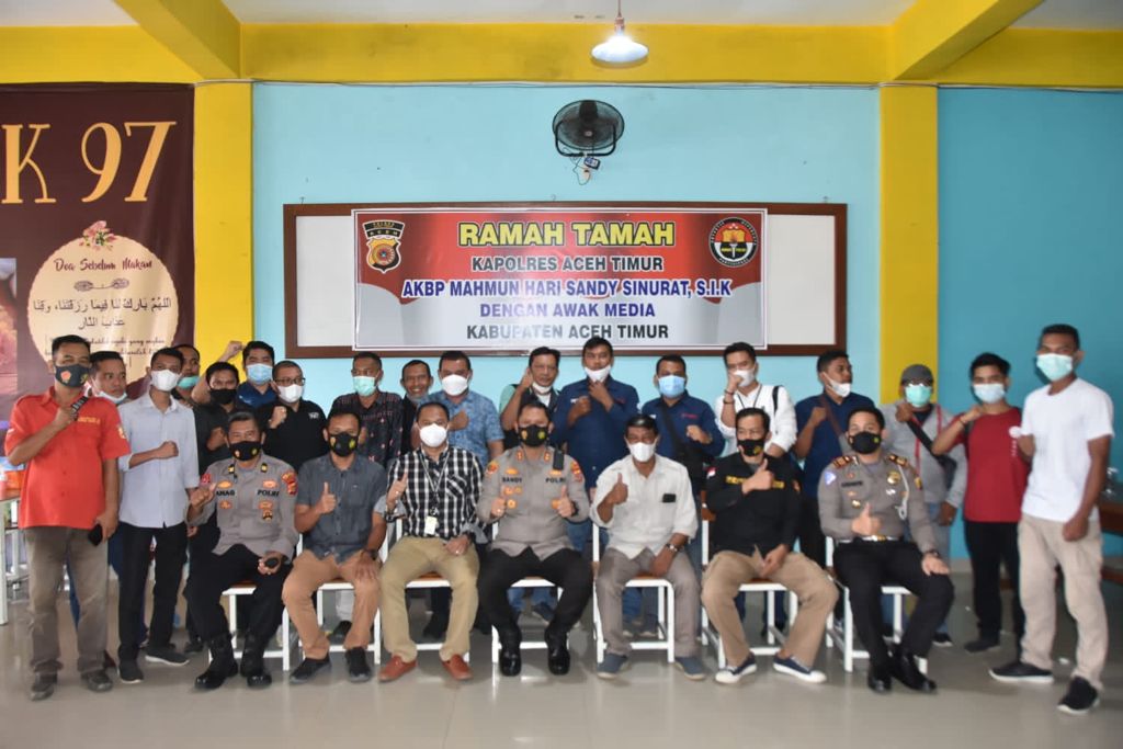 APJN.NET -ACEH TIMUR – AKBP Mahmun Hari Sandy Sinurat,S.I. K, yang baru menjabat Kapolres Aceh Timur menggelar kegiatan silaturahmi dan temu ramah dengan sejumlah awak media di daerah itu pada Kamis (16/9/21).
