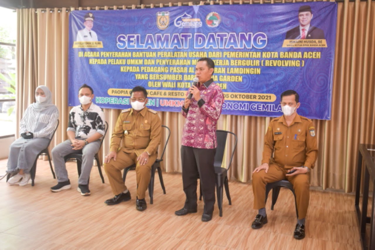 Hal tersebut disampaikan Isnaini Husda saat penyerahan bantuan peralatan usaha dari Pemerintah Kota Banda Aceh kepada pelaku UMKM dan penyerahan modal kerja bergulir (revolving) kepada pedagang pasar Al-Mahirah Lamdingin yang bersumber dari Paopia Garden, yang berlangsung di Kafe dan Resto Paopia Garden, Lamteh Banda Aceh, Selasa (5/10/2021)