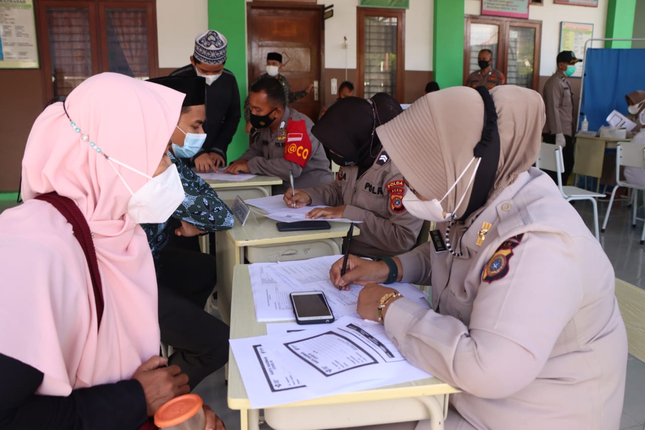 APJN.NET -ACEH BESAR -Ditpamobvit berkolaborasi dengan Bid Dokkes Polda Aceh menggelar vaksinasi saweu gampong di Pesantren terpadu Mahad Daarut Tahfizh Al-Ikhlash Gampong Lampasi Engking Kecamatan Darul Imarah, Aceh Besar, Kamis (7/10/21).