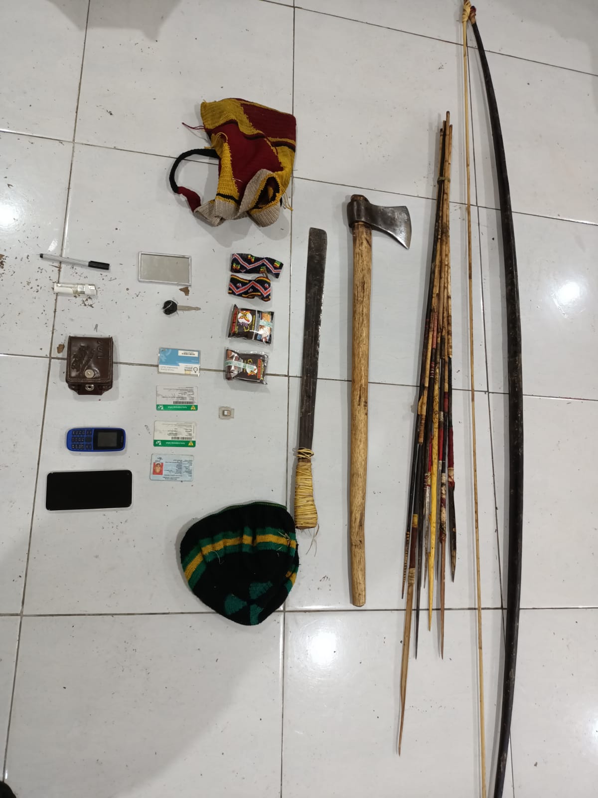 Bersama pelaku, polisi turut mengamankan sejumlah barang bukti berupa satu buah busur, sembilan anak panah, satu buah kampak, satu unit ponsel, perangkat elektronik, dan identitas diri lain milik tersangka.