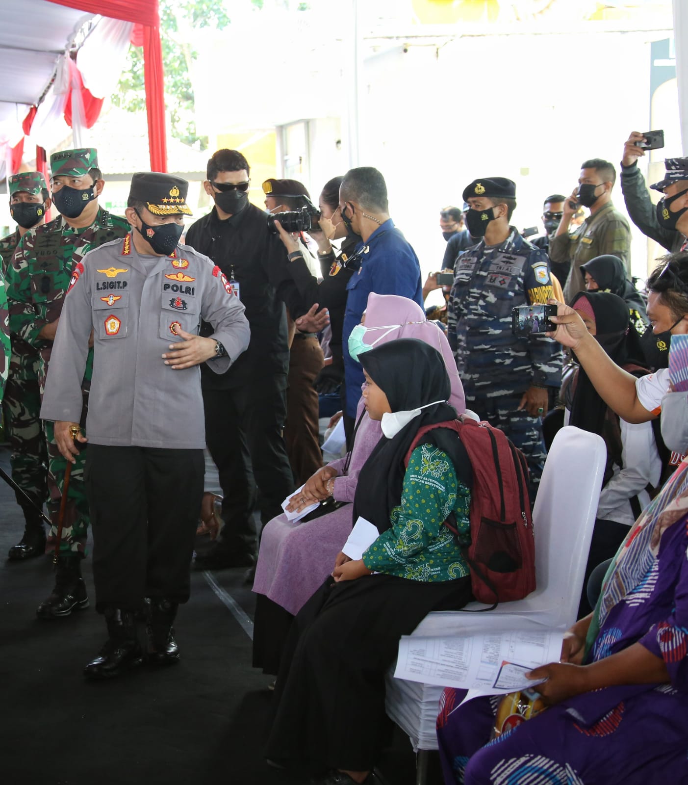“Dan kemudian terkait vaksinasi harus kami tingkatkan dan percepat. Sehingga kemudian seluruh masyarakat Indonesia yang diharapkan Bapak Presiden minimal 70 persen bisa tercapai,” kata Sigit dalam jumpa pers usai meninjau serbuan vaksinasi.