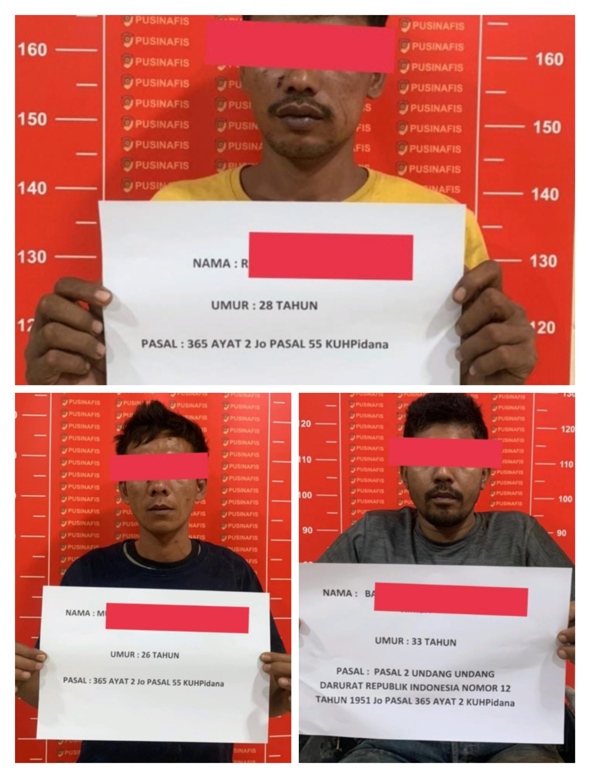 “Intinya sudah ditangkap dan masih dilakukan pemeriksaan. Para pelaku akan dijerat dengan Pasal 365 KUH Pidana tentang Pencurian dan Kekerasan,” tutupnya singkat.