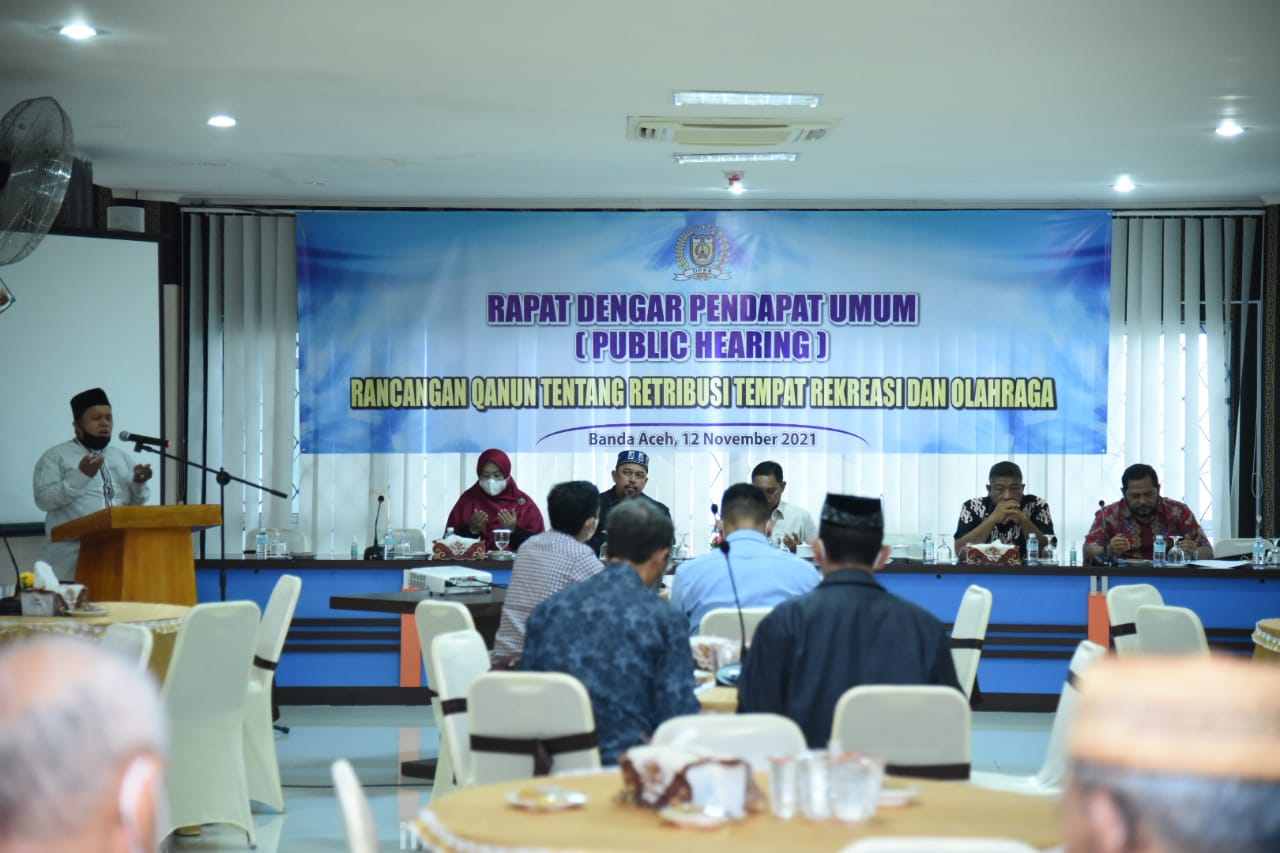 APJN.NET – BANDA ACEH – Badan Legislasi (Banleg) Dewan Perwakilan Rakyat Kota (DPRK) Banda Aceh menggelar rapat dengar pendapat umum atau public hearing Rancangan Qanun (Raqan) Kota Banda Aceh Tahun 2021 tentang Retribusi Tempat Rekreasi dan Olahraga. Rapat berlangsung di lantai IV gedung DPRK Banda Aceh, Jumat (12/11/2021).