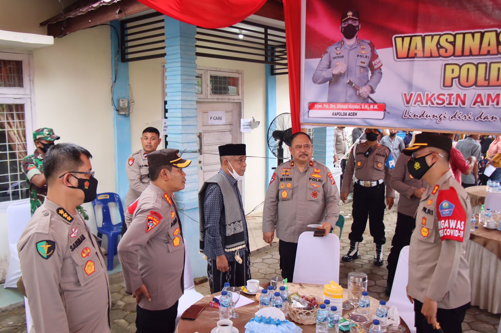 APJN.NET -ACEH BESAR – Wakapolda Aceh Brigjen Pol. Dr. Drs. H. Agus Kurniady Sutisna, M. M., M. H, mewakili Kapolda Aceh Irjen Pol. Drs. Ahmad Haydar, S. H., M. M, meninjau gerai vaksinasi massal yang digelar di Kantor Camat Montasik, Aceh Besar, Rabu (15/12/21).