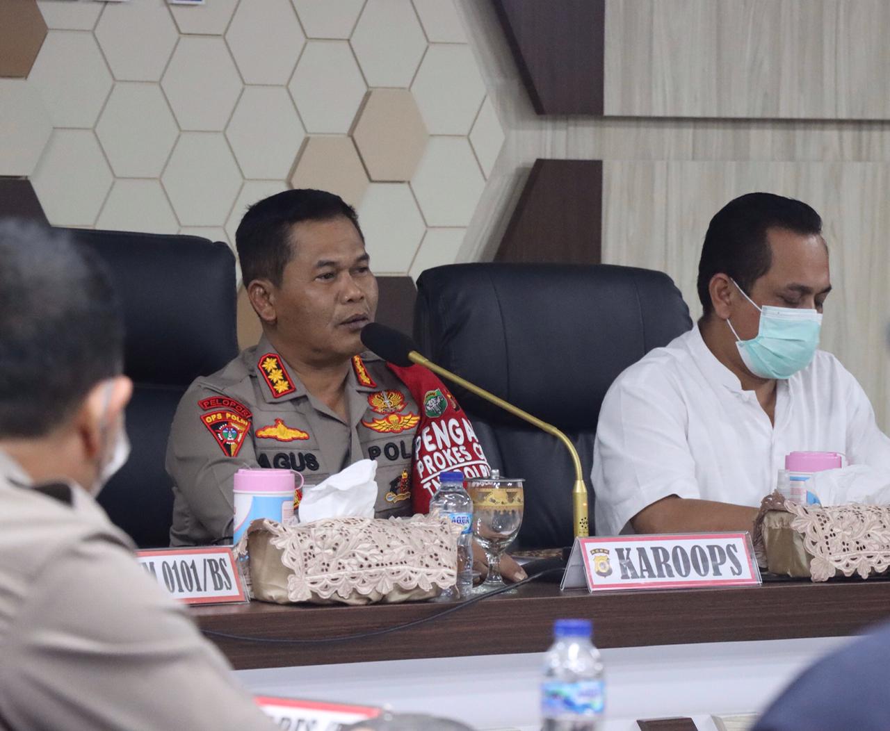 APJN.NET-BANDAACEH– Karo Ops Polda Aceh Kombes Pol. Drs. H. Agus Sarjito memimpin rapat koordinasi (Rakor) lintas sektor dengan berbagai dinas terkait dalam rangka vaksinasi, sasaran anak usia 6-11 tahun, Jumat (7/1/2022) di Aula Macdum Sakti Mapolda Aceh.