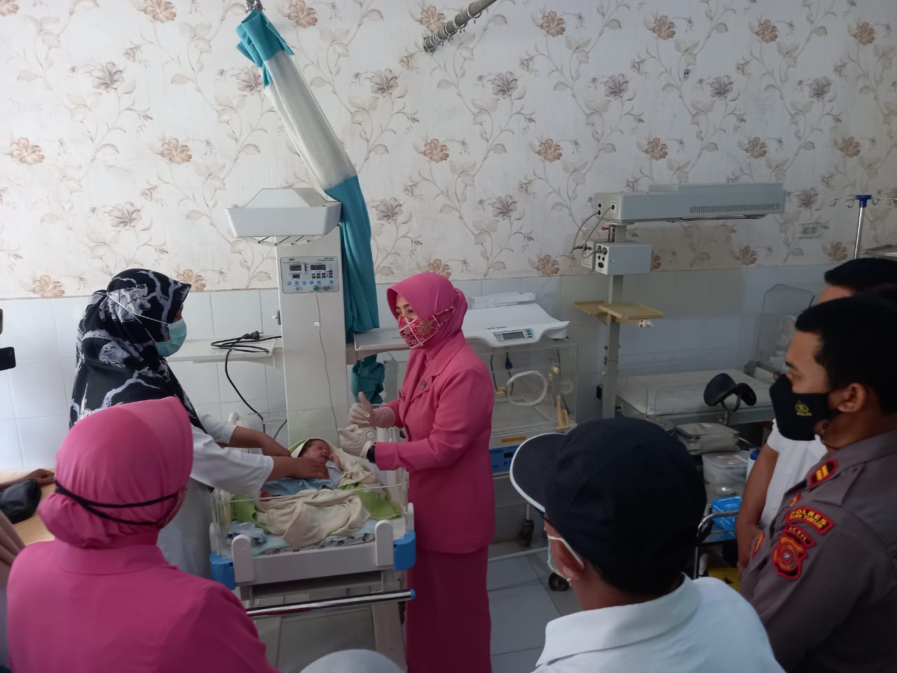 Kehadiran Ketua Bhayangkari Cabang Aceh Timur tersebut, juga turut didampingi Ketua Bhayangkari Ranting Ranto Peureulak Ny Ayu Eko, sekaligus juga menyerahkan bantuan kepada perwakilan perawat untuk keperluan bayi tersebut.