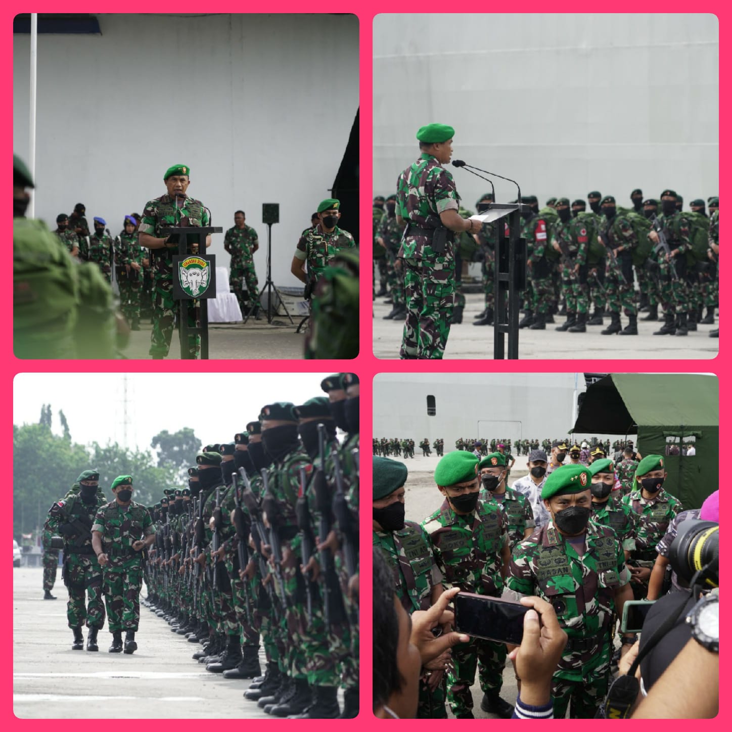 “Saya yakin dengan dilandasi niat, kesungguhan serta kemampuan sebagai seorang prajurit yang profesional, tugas ini akan dapat diselesaikan dengan baik, sehingga harapan saya 400 personel dan materiil perorangan/satuan yang saat ini berangkat, sampai dengan kembali harus lengkap dan aman,” harap Mayjen TNI Mohamad Hasan.