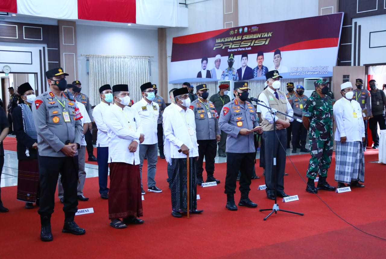 Lebih lanjut, kata Kabid Humas, Kegiatan Kapolri diawali dengan melihat pelaksanaan vaksinasi yang digelar di Lapangan kantor LPMP setempat, serta kemudian memasuki Aula Kantor LPMP itu, dan langsung menyerahkan bantuan secara simbolis kepada masyarakat dan siswa yang melakukan vaksin, sembari menyerahkan piagam penghargaan kepada Kapolresta Banda Aceh Kombes Pol Joko Krisdiyanto, Kapolres Simeulue AKBP Pandji Santoso, dan Kapolres Aceh Besar AKBP Carlie Syahputra Bustamam, yang berhasil menjadi pemenang dengan meraih masing-masing juara 1,2 dan 3, berupa capaian vaksinasi tertinggi secara umum berdasarkan zonasi target sampai dengan 20 Februari 2022.