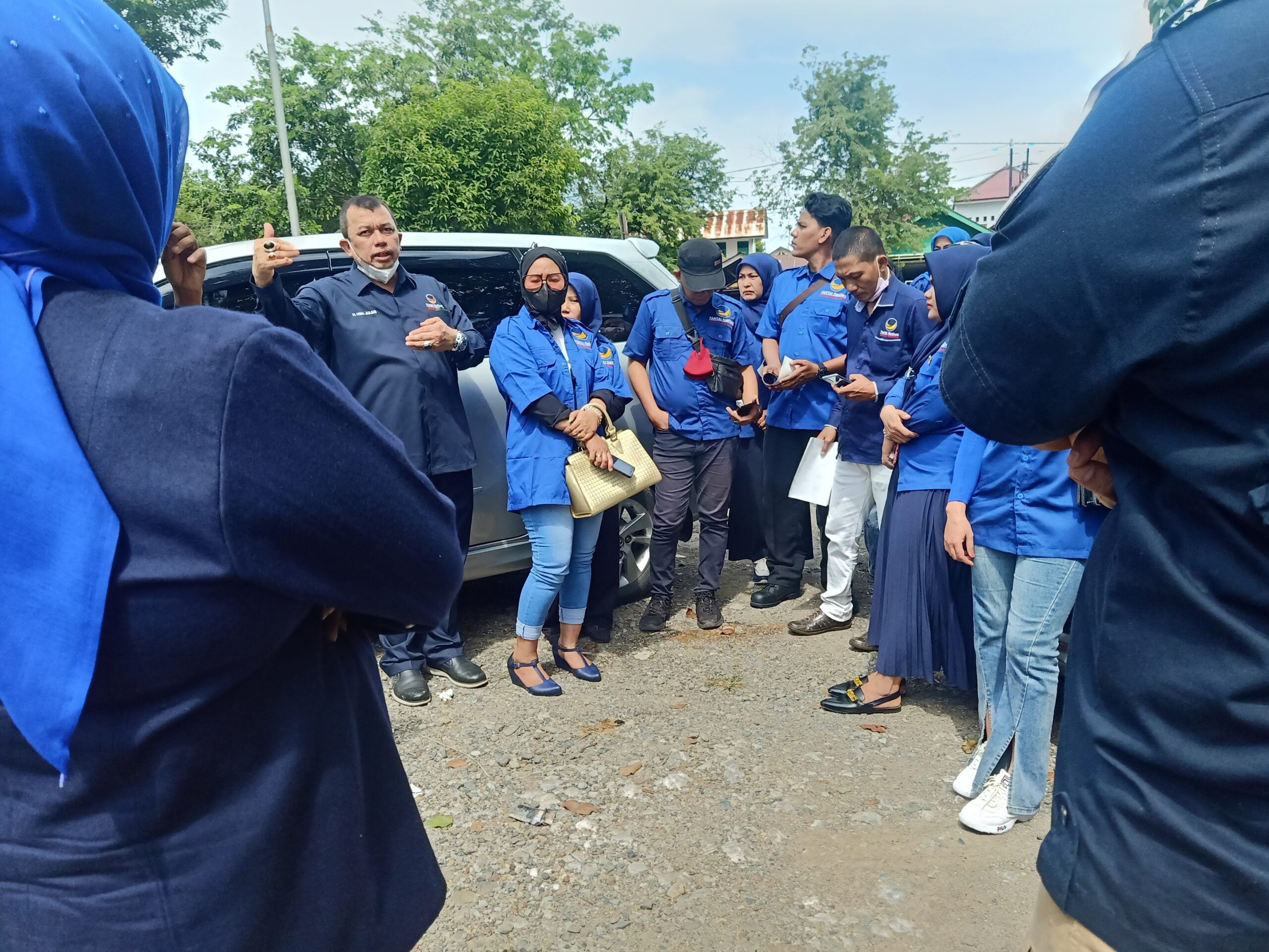 Pasukan DPD Kota Banda Aceh tersebut berkumpul di depan Kantor Sekretariat DPW NasDem Aceh, di Banda Aceh.