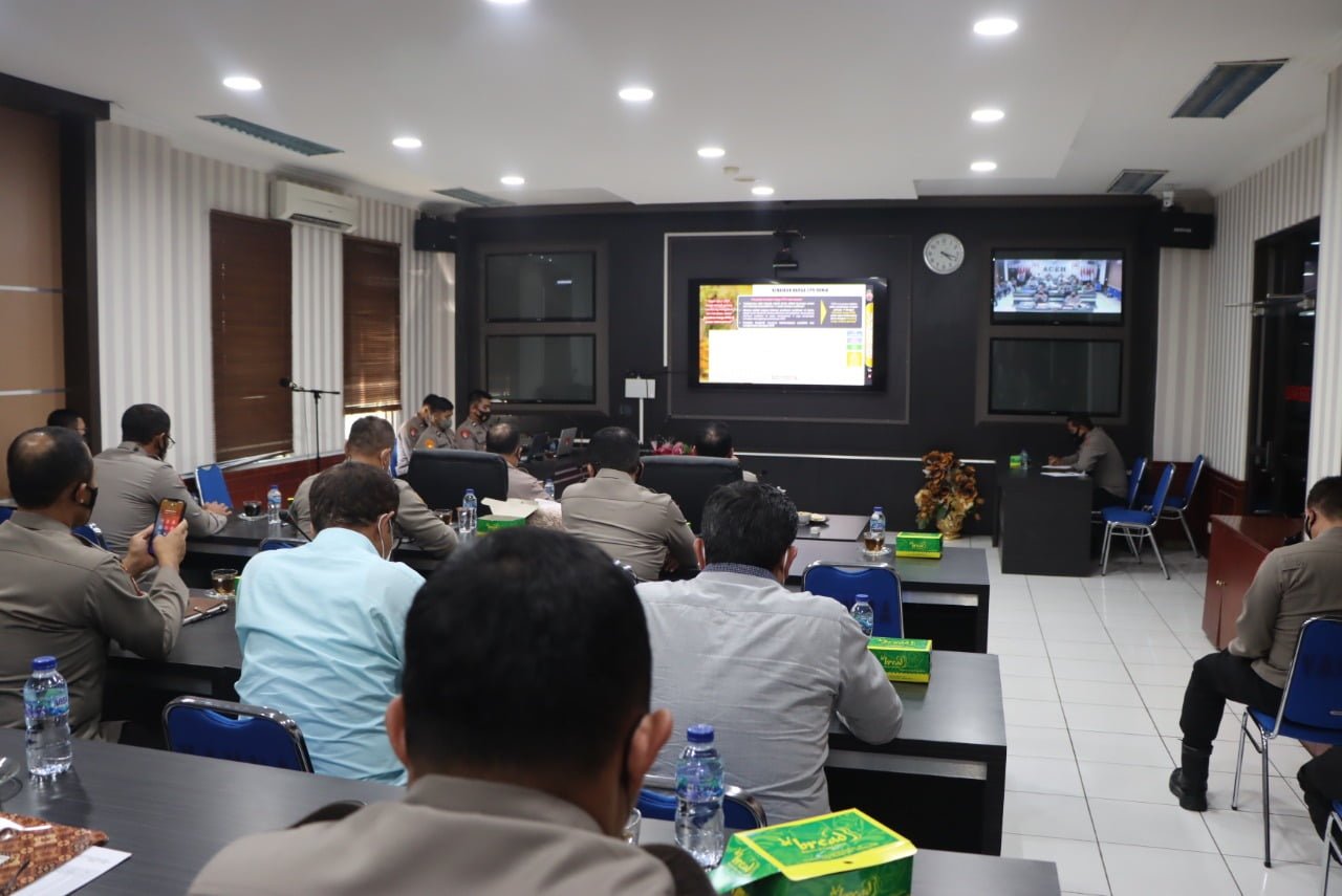 APJN.NET-BANDA ACEH- Kapolda Aceh Irjen Pol. Ahmad Haydar, didampingi wakapolda Aceh Brigjen Pol H. Agus Kurniady Sutisna, menghadiri kegiatan vicon yang dipimpin Kapolri Jenderal Polisi Listyo Sigit Prabowo, di Mabes Polri, Jakarta Selatan, Selasa (15/3/22).