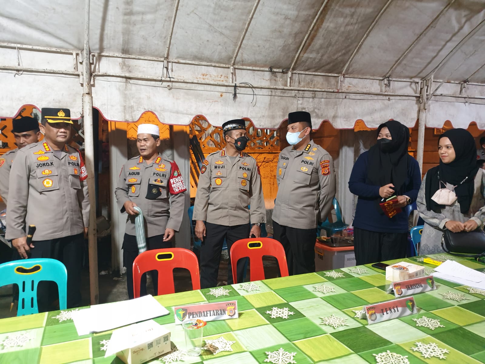 APJN.NET – BANDA ACEH- Karo Ops Polda Aceh Kombes Pol. Drs. H. Agus Sarjito bersama Dirpamobvit dan Kabid TIK Polda Aceh turut mengunjungi gerai vaksin yang digelar di Masjid Baitul Salihin, Kecamatan Ulee Kareng Banda Aceh, Kamis (7/4/22) malam.