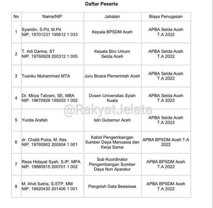 Sementara, sebelumnya juga beredar daftar 3 pimpinan dan 1 orang anggota DPRA bakal berangkat keluar negeri, yakni Amerika, untuk tujuan menghadiri undangan The Island University.