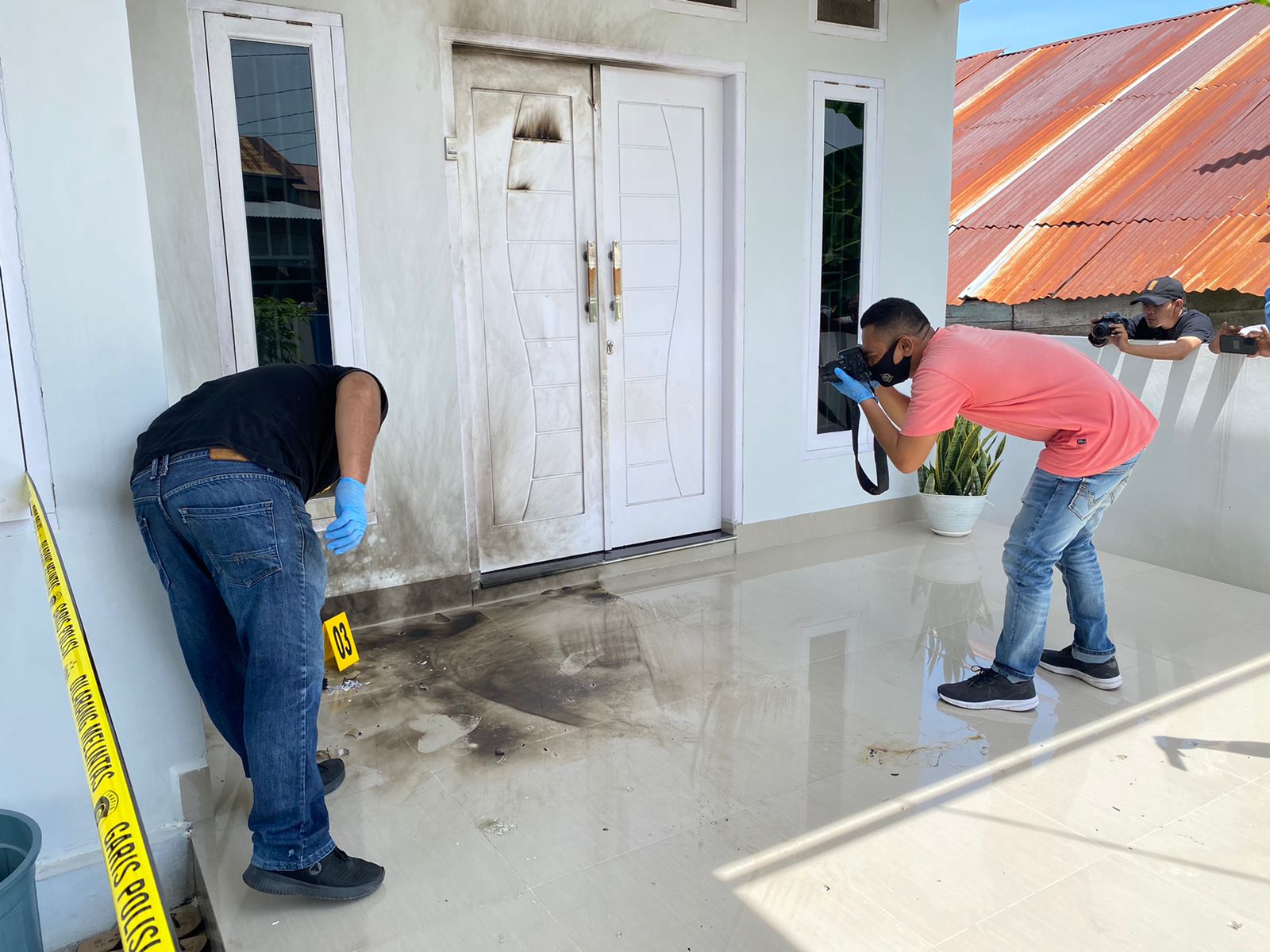 Petugas juga sudah mengamankan beberapa barang bukti berupa pecahan botol, sumbu kain terbakar, sapu yang terbakar, keset kaki yang terbakar, abu bekas bakaran, dan rekaman CCTV di sekitar TKP.