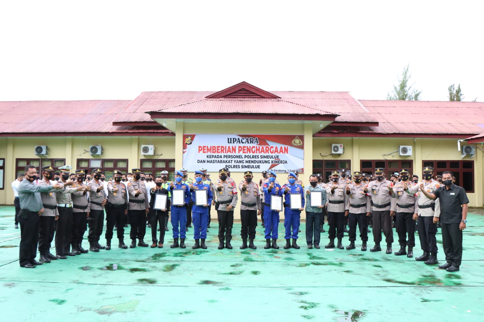 “Penghargaan itu langsung diserahkan Kapolres dalam upacara yang digelar di lapangan apel, Mapolres Simeulue, Rabu (1/6/22) pagi,” kata Kabid Humas Polda Aceh Kombes Pol Winardy, dalam keterangan tertulisnya.