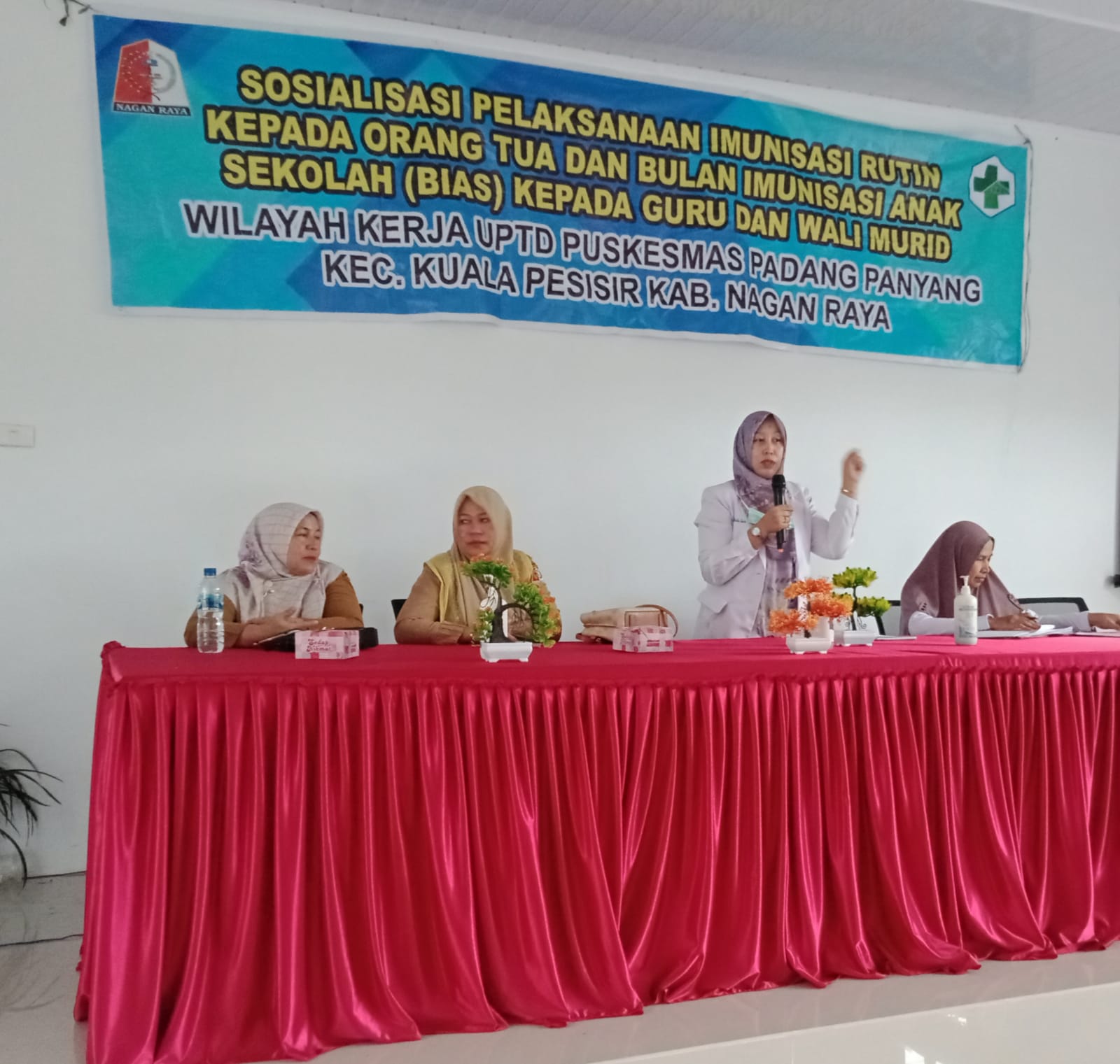 APJN.NET-SUKA MAKMUE- Wilayah UPTD Puskesmas Padang Panyang kecamatan Kuala pesisir, kabupaten Nagan Raya, melakukan sosialisasi pelaksanaan kegiatan rutin kepada orang tua, para guru, ini yang disebut dengan Bulan Imunisasi Anak Sekolah (BIAS), Selasa (06/09/2022)
