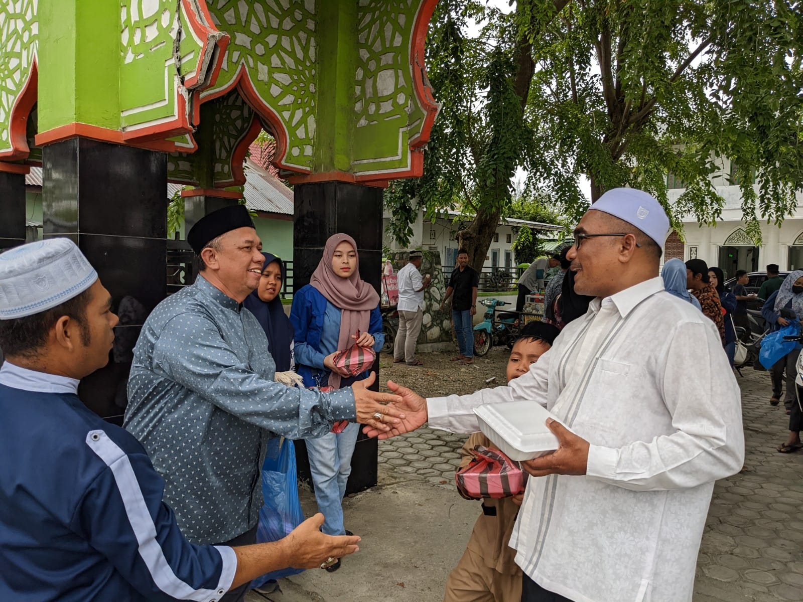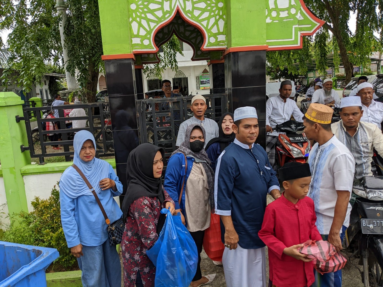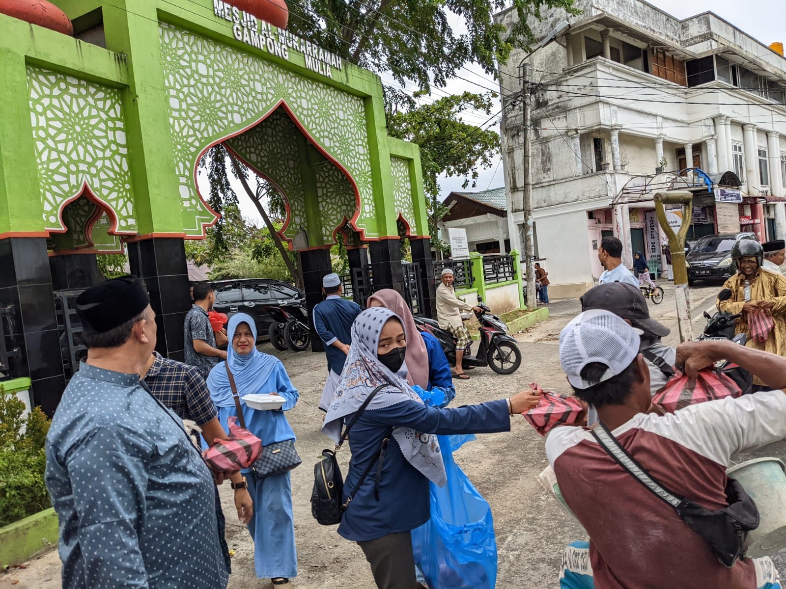 BERITA PHOTO: DPD NasDem Kota Banda Aceh mengadakan Jumat Berkah dengan membagikan Nasi Ayam penyet untuk Jama’ah Sholat Jum’at di Masjid AL Mukaromah Gampong Mulia Kecamatan Kuta Alam Kota Banda Aceh. Kegiatan tersebut sekaligus dibarengi dengan bersilaturahmi di rumah Keuchik Gampong Mulia, Jumat (23/9/2022).