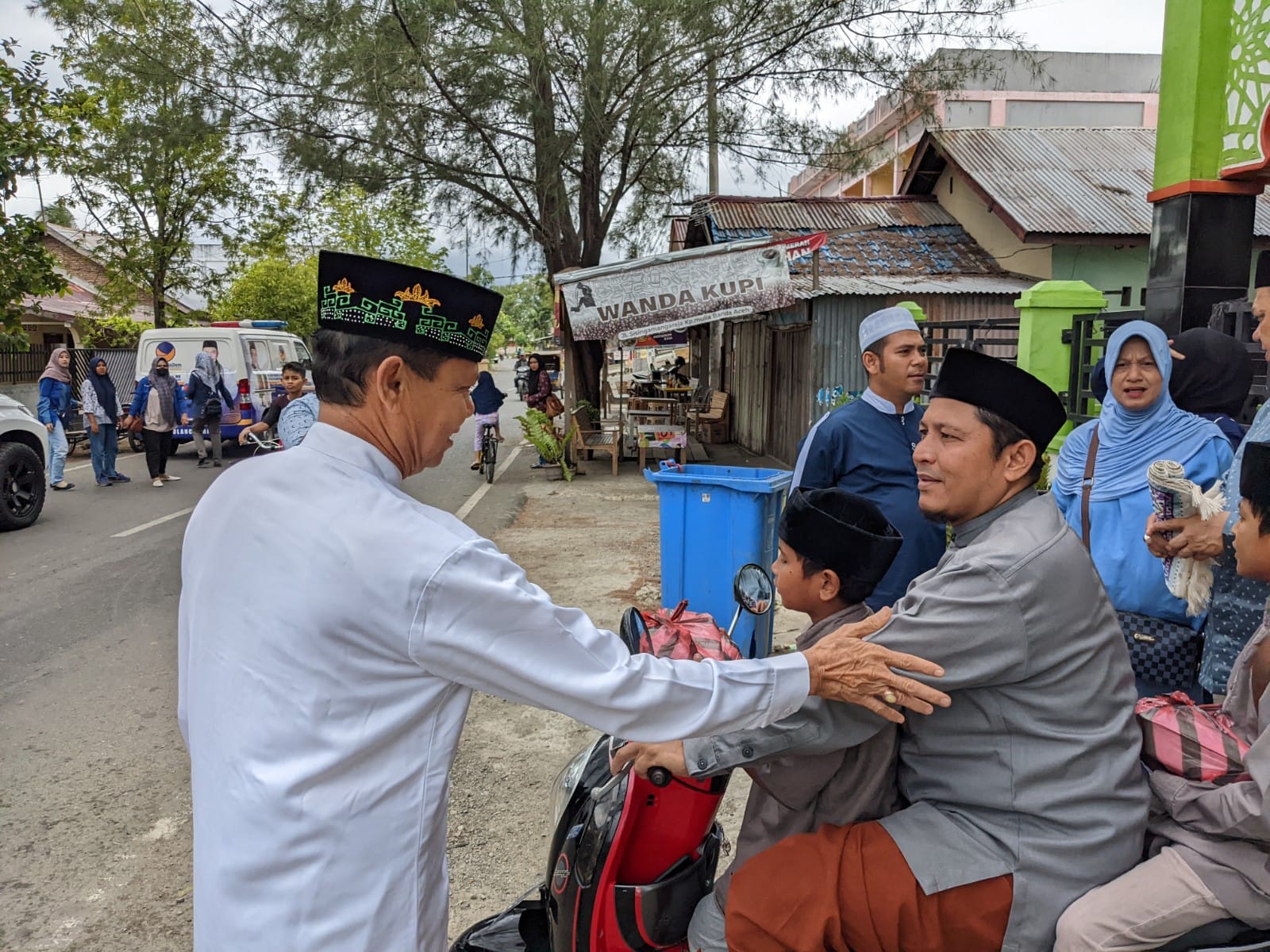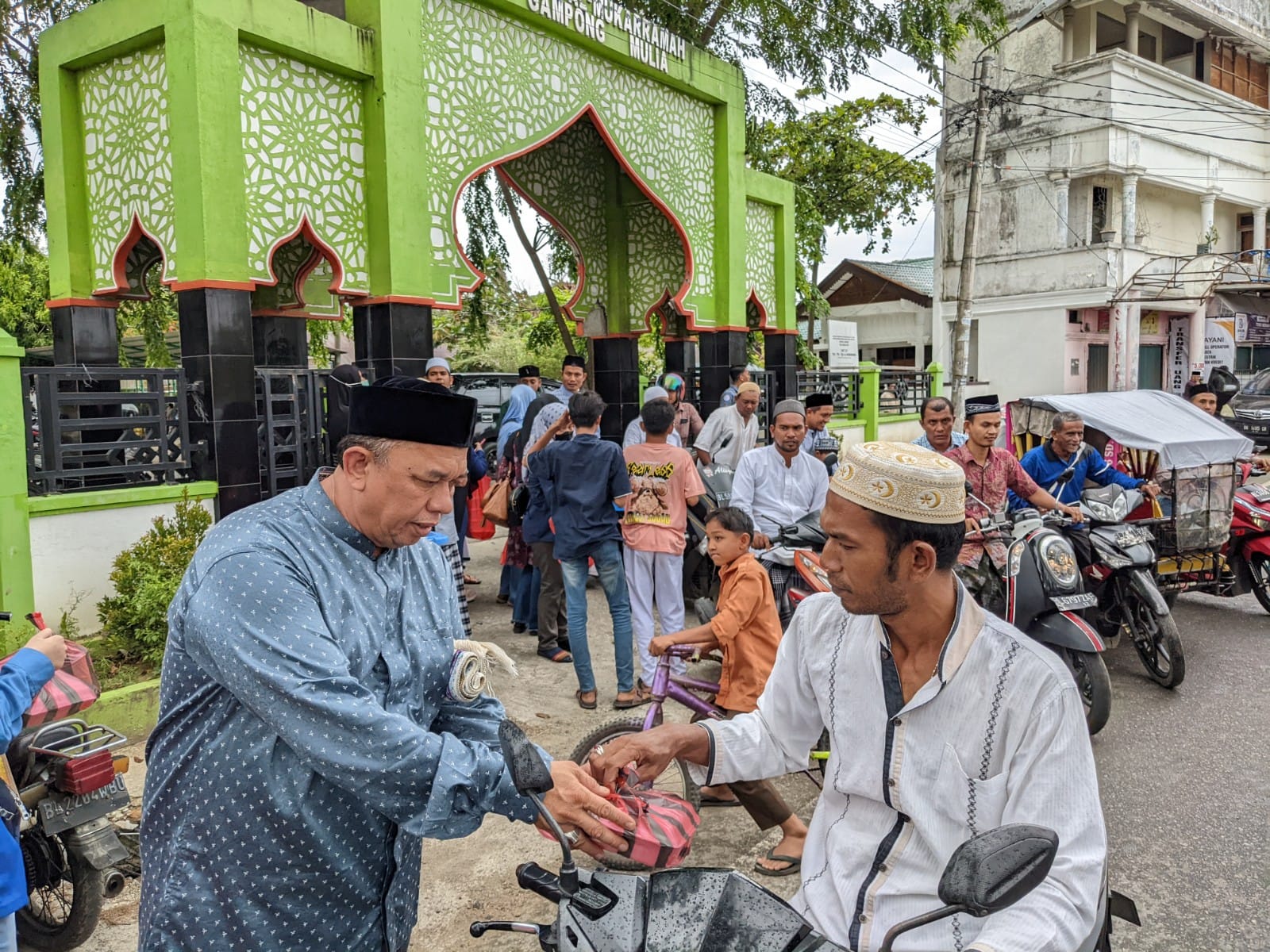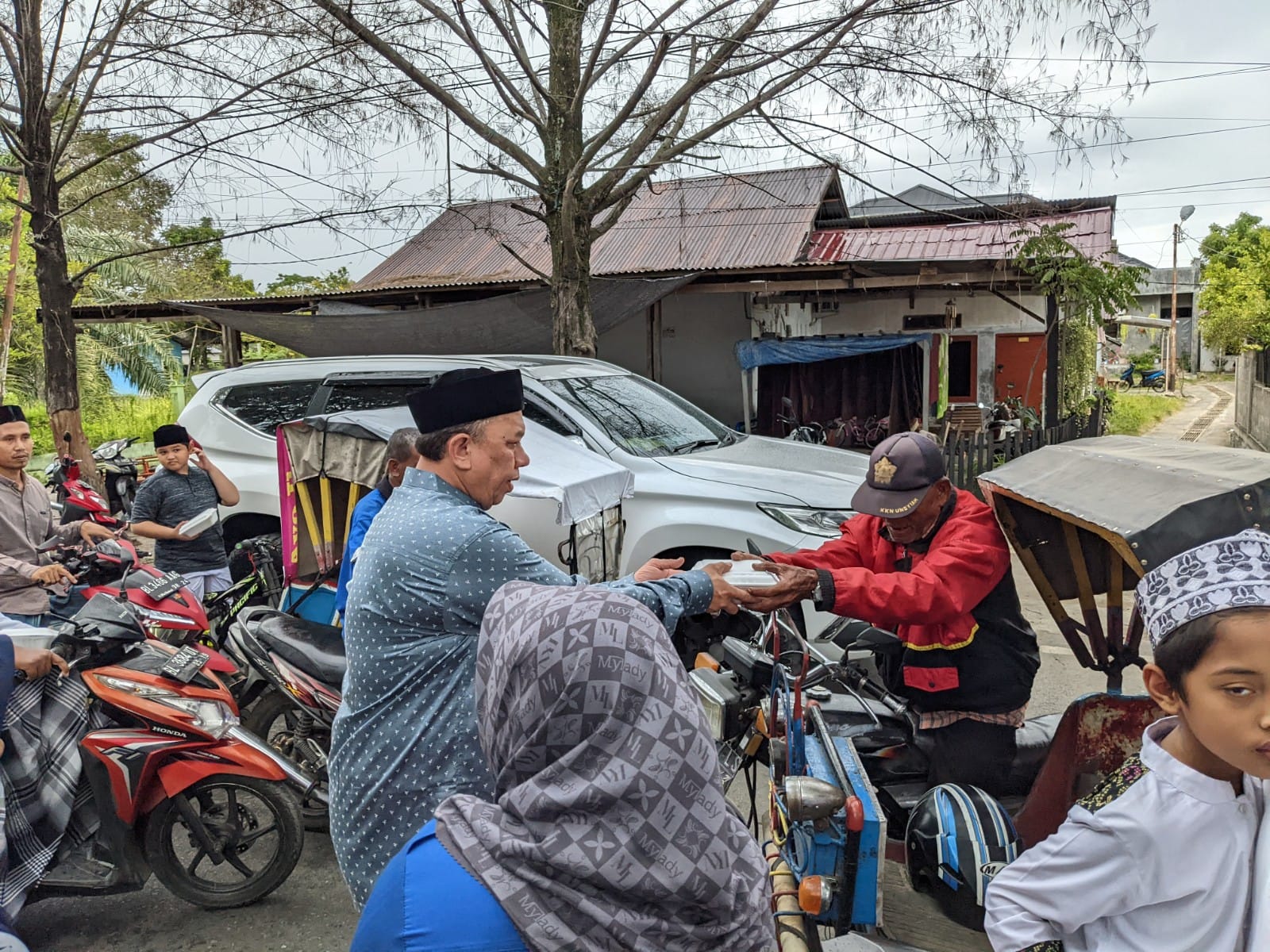 BERITA PHOTO: DPD NasDem Kota Banda Aceh mengadakan Jumat Berkah dengan membagikan Nasi Ayam penyet untuk Jama’ah Sholat Jum’at di Masjid AL Mukaromah Gampong Mulia Kecamatan Kuta Alam Kota Banda Aceh. Kegiatan tersebut sekaligus dibarengi dengan bersilaturahmi di rumah Keuchik Gampong Mulia, Jumat (23/9/2022).