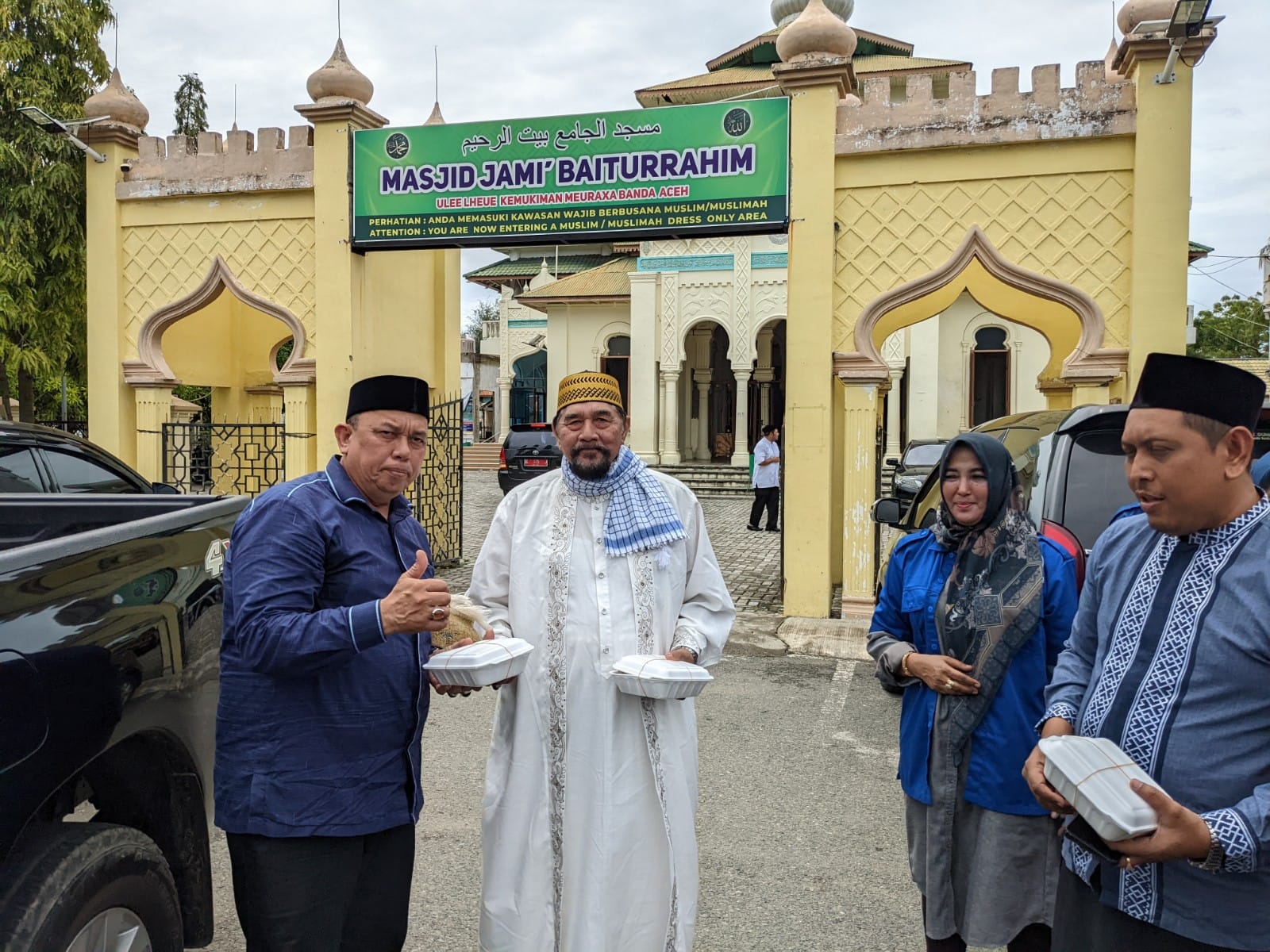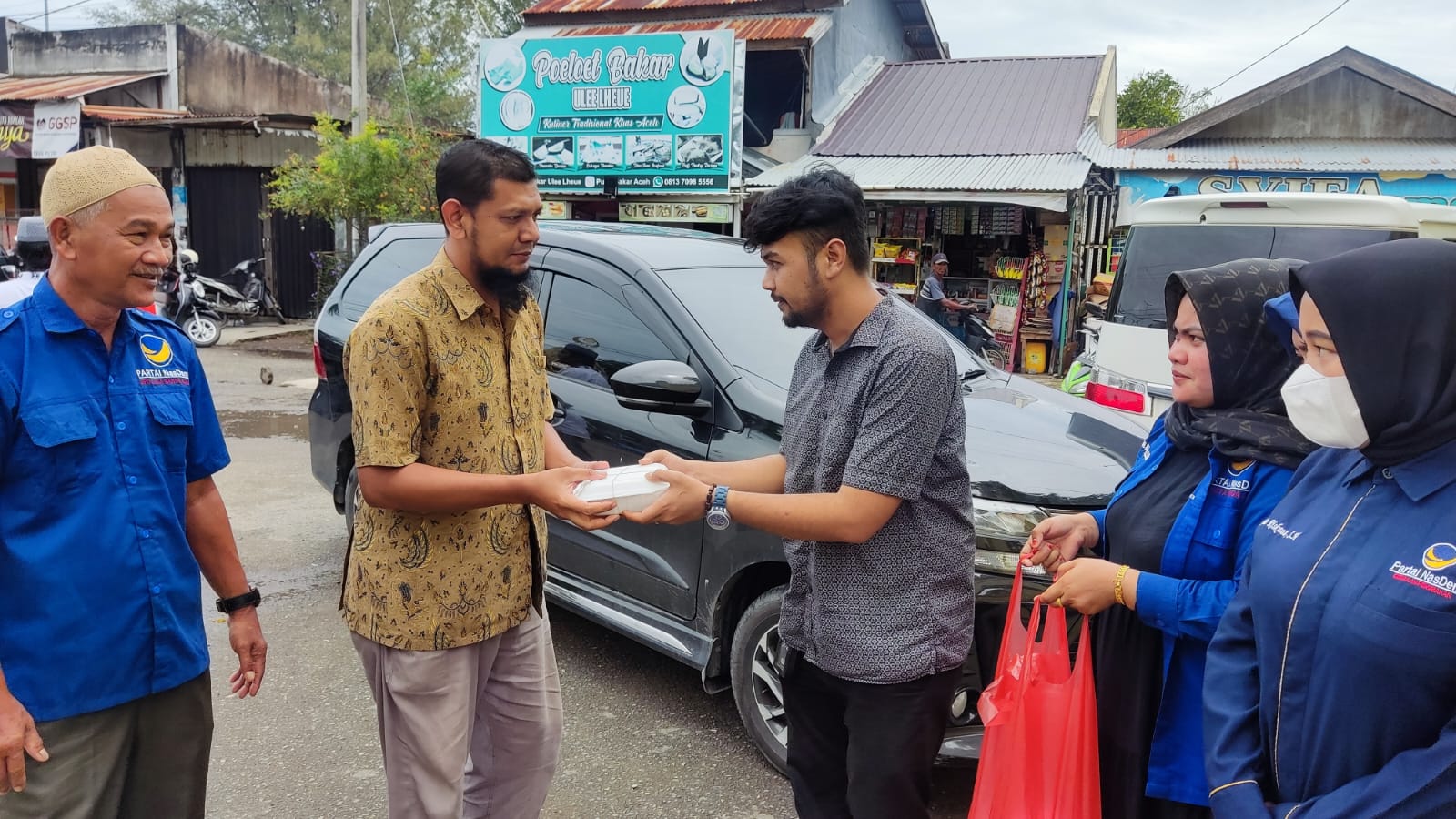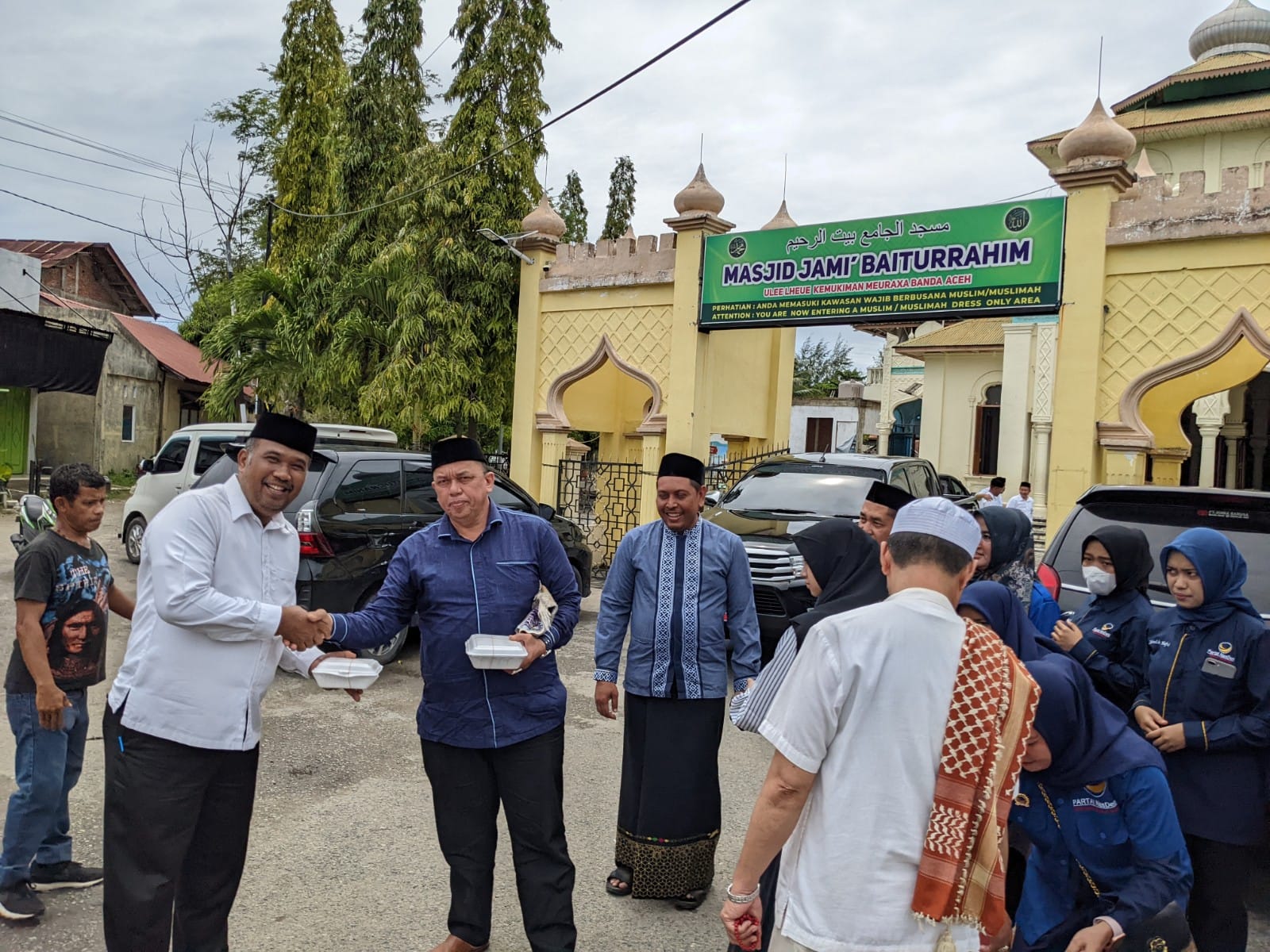 APJN.NET-BANDA ACEH-DPD NasDem Kota Banda Aceh, melaksanakan kegiatan jumat berkah dengan membagi bagikan nasi ayam penyet kepada jamaah sholat Jumat, di masjid Baiturahim, Gampong Ulee Lheue, Kecamatan Meuraxa, kota setempat, Jumat (7/19/2022).