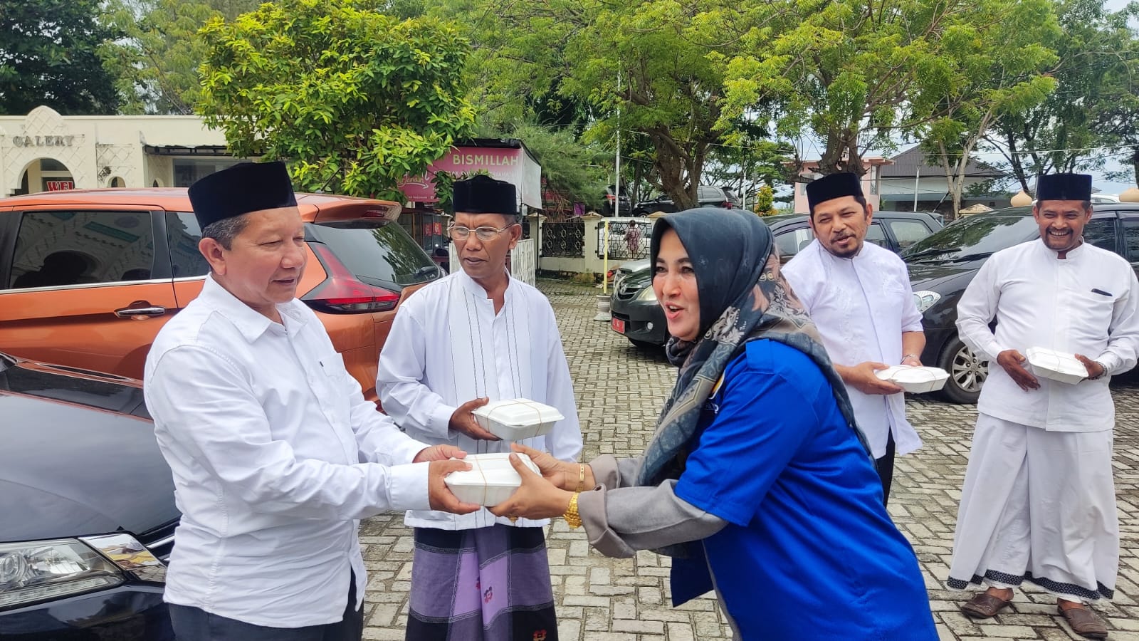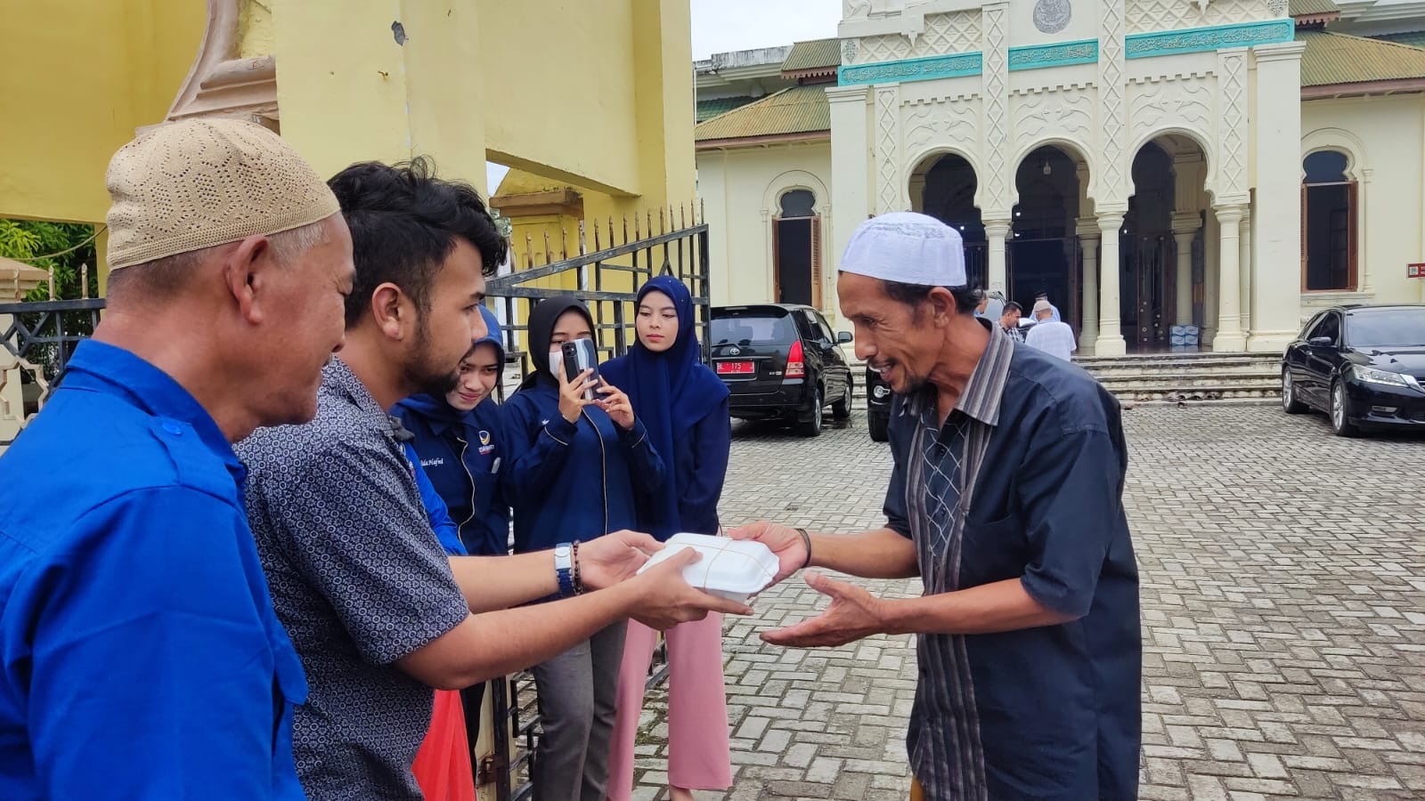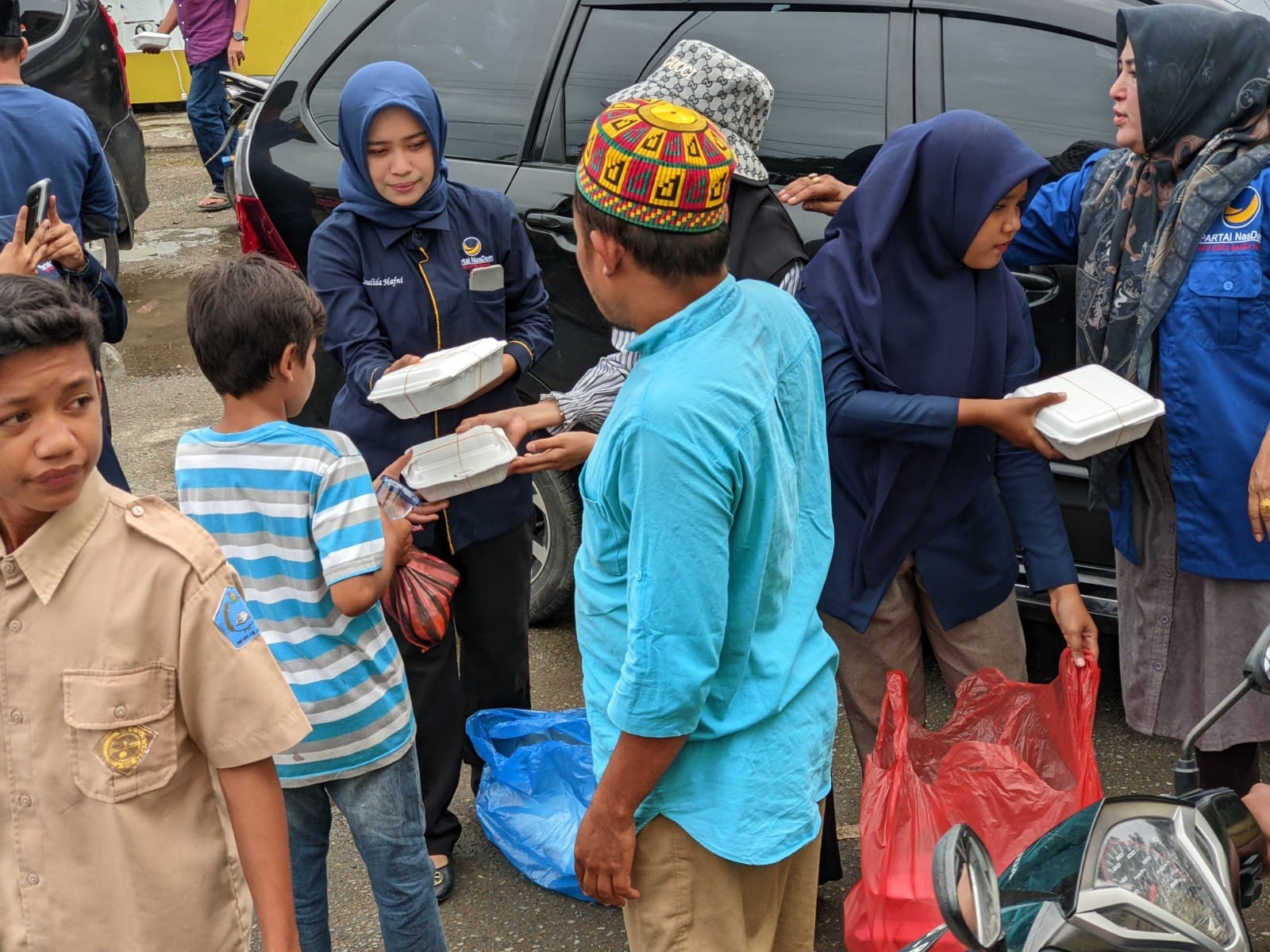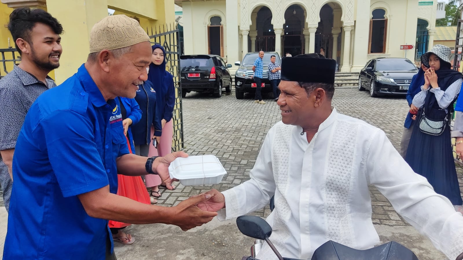 APJN.NET-BANDA ACEH-DPD NasDem Kota Banda Aceh, melaksanakan kegiatan jumat berkah dengan membagi bagikan nasi ayam penyet kepada jamaah sholat Jumat, di masjid Baiturahim, Gampong Ulee Lheue, Kecamatan Meuraxa, kota setempat, Jumat (7/19/2022).