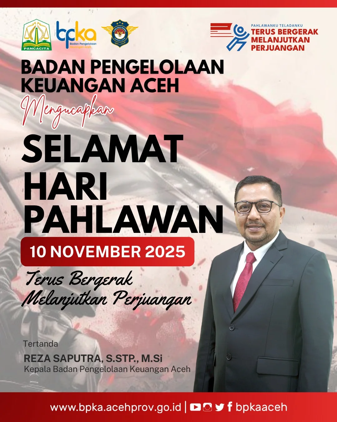IKLAN BPKA – UCAPAN SELAMAT HARI PAHLAWAN NASIONAL TAHUN 2025 Redaksi10 November 202511 November 202523 views Pos terkaitIklan Bank Aceh Syariah – Ucapan Peringatan HPNIKLAN BIRO ADPIM SEKDA ACEH – UCAPAN SELAMAT HARI PAHLAWAN NASIONAL TAHUN 2025IKLAN DPRA – UCAPAN SELAMAT HARI PAHLAWAN NASIONAL TAHUN 2025IKLAN WALI NANGGROE ACEH – UCAPAN DUKA CITA ATAS MENINGGALNYA BAPAK H. SURIPTO, SH (PENDIRI DAN KETUA UMUM KOMITE NASIONALUNTUK RAKYAT PALESTINA)IKLAN BPKA – UCAPAN SELAMAT DAN SUKSES MTQ KE XXXVII TAHUN 2025IKLAN DISNAKERMOBDUK ACEH – UCAPAN SELAMAT ATAS TERSELENGGARANYA MTQ ACEH XXXVII