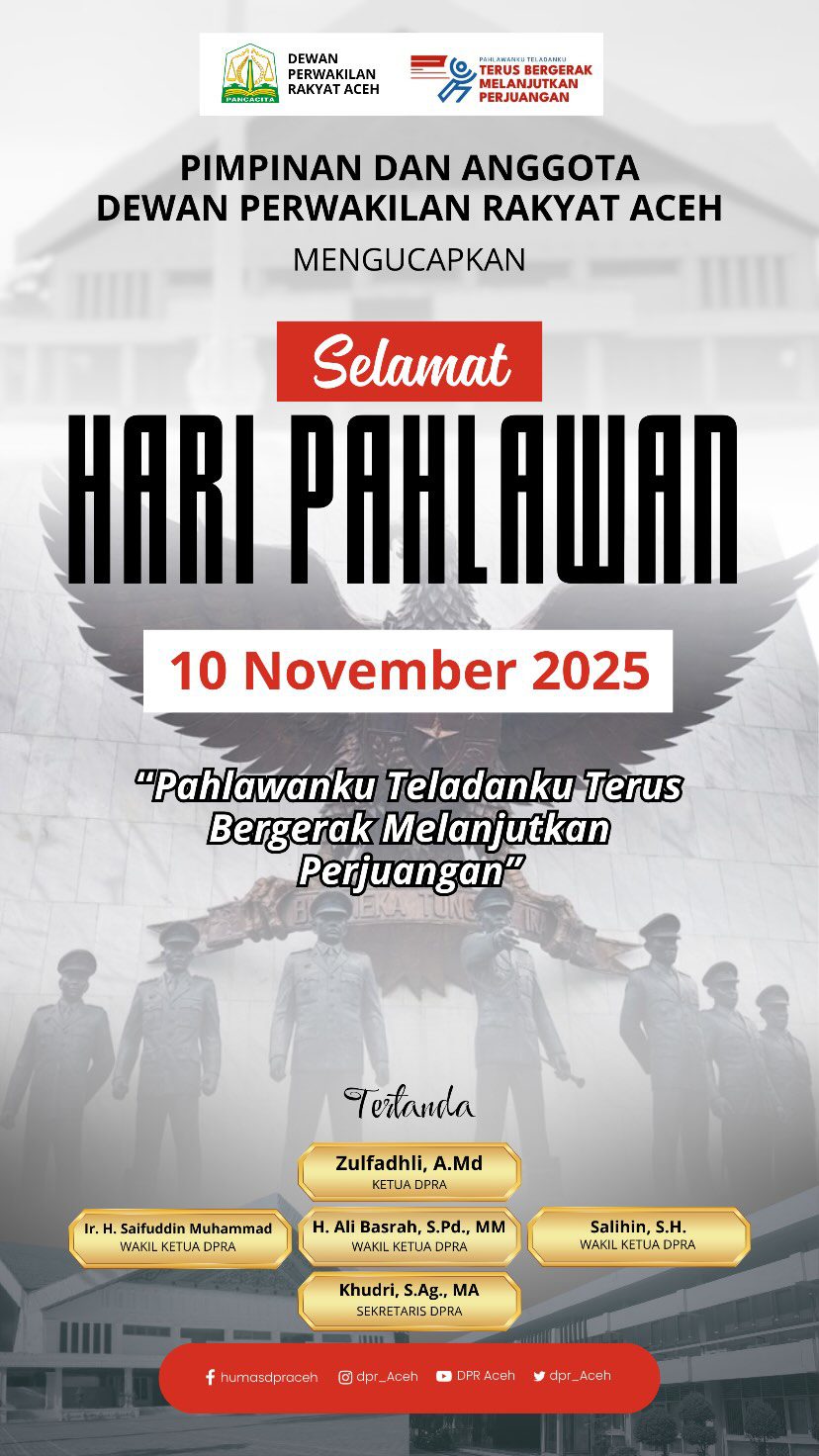 IKLAN DPRA – UCAPAN SELAMAT HARI PAHLAWAN NASIONAL TAHUN 2025 Redaksi10 November 202511 November 202514 views Pos terkaitIklan Bank Aceh Syariah – Ucapan Peringatan HPNIKLAN BIRO ADPIM SEKDA ACEH – UCAPAN SELAMAT HARI PAHLAWAN NASIONAL TAHUN 2025IKLAN BPKA – UCAPAN SELAMAT HARI PAHLAWAN NASIONAL TAHUN 2025IKLAN WALI NANGGROE ACEH – UCAPAN DUKA CITA ATAS MENINGGALNYA BAPAK H. SURIPTO, SH (PENDIRI DAN KETUA UMUM KOMITE NASIONALUNTUK RAKYAT PALESTINA)IKLAN BPKA – UCAPAN SELAMAT DAN SUKSES MTQ KE XXXVII TAHUN 2025IKLAN DISNAKERMOBDUK ACEH – UCAPAN SELAMAT ATAS TERSELENGGARANYA MTQ ACEH XXXVII
