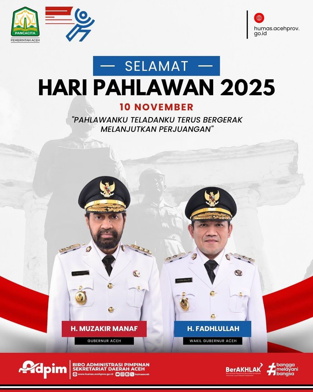 IKLAN BIRO ADPIM SEKDA ACEH – UCAPAN SELAMAT HARI PAHLAWAN NASIONAL TAHUN 2025 Redaksi10 November 202511 November 202515 views Pos terkaitIklan Bank Aceh Syariah – Ucapan Peringatan HPNIKLAN DPRA – UCAPAN SELAMAT HARI PAHLAWAN NASIONAL TAHUN 2025IKLAN BPKA – UCAPAN SELAMAT HARI PAHLAWAN NASIONAL TAHUN 2025IKLAN WALI NANGGROE ACEH – UCAPAN DUKA CITA ATAS MENINGGALNYA BAPAK H. SURIPTO, SH (PENDIRI DAN KETUA UMUM KOMITE NASIONALUNTUK RAKYAT PALESTINA)IKLAN BPKA – UCAPAN SELAMAT DAN SUKSES MTQ KE XXXVII TAHUN 2025IKLAN DISNAKERMOBDUK ACEH – UCAPAN SELAMAT ATAS TERSELENGGARANYA MTQ ACEH XXXVII