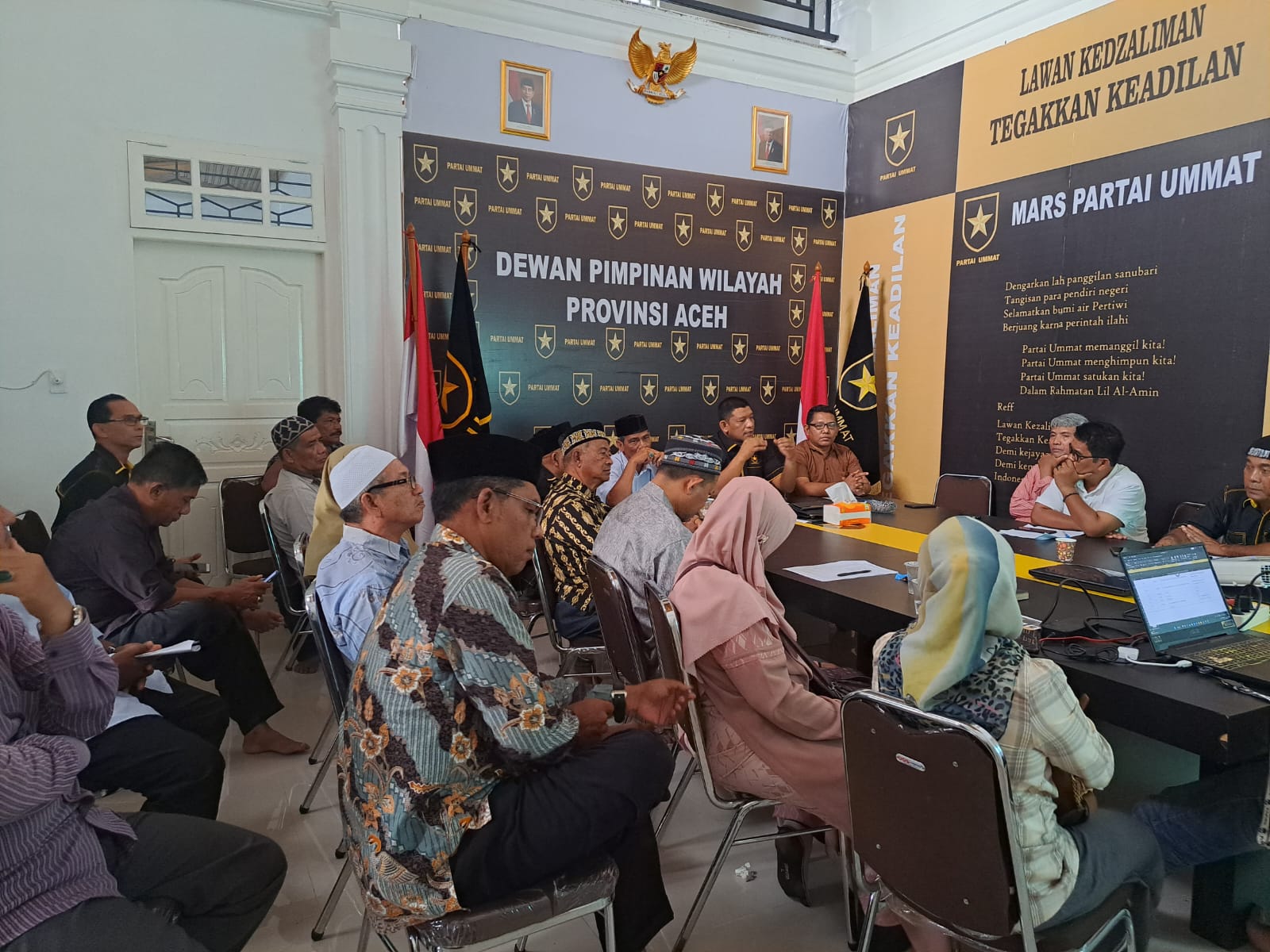 Kedatangan warga langsung disambut oleh bendahara DPW Partai Ummat Aceh Afdhal Yudi, dengan mempersilahkan duduk diruang tengah gedung berlantai dua itu, dimana meeting kerap digelar.
