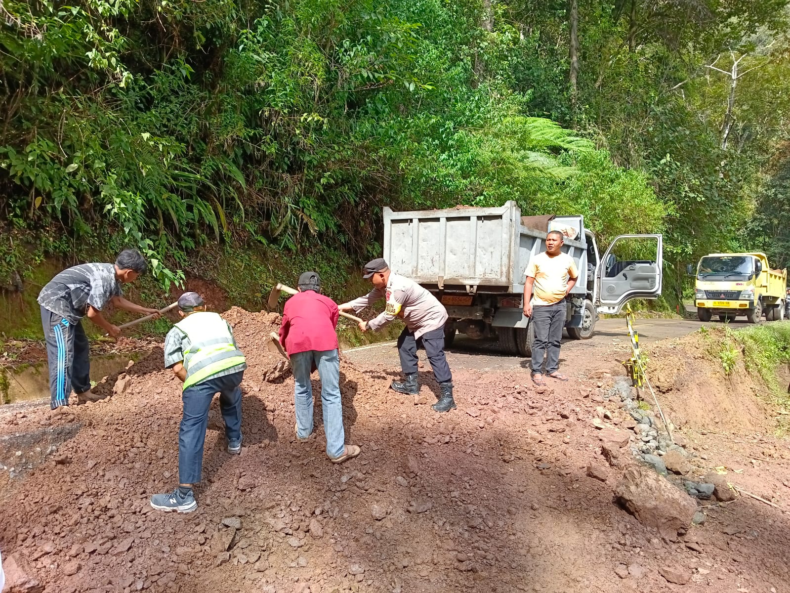 Kapolres Aceh Tengah, AKBP Dody Indra Eka Putra, melalui Kapolsek Linge Ipda Sofyan Kurniawan, menyampaikan perbaikan jalan dengan cara ditimbun dengan material tanah.