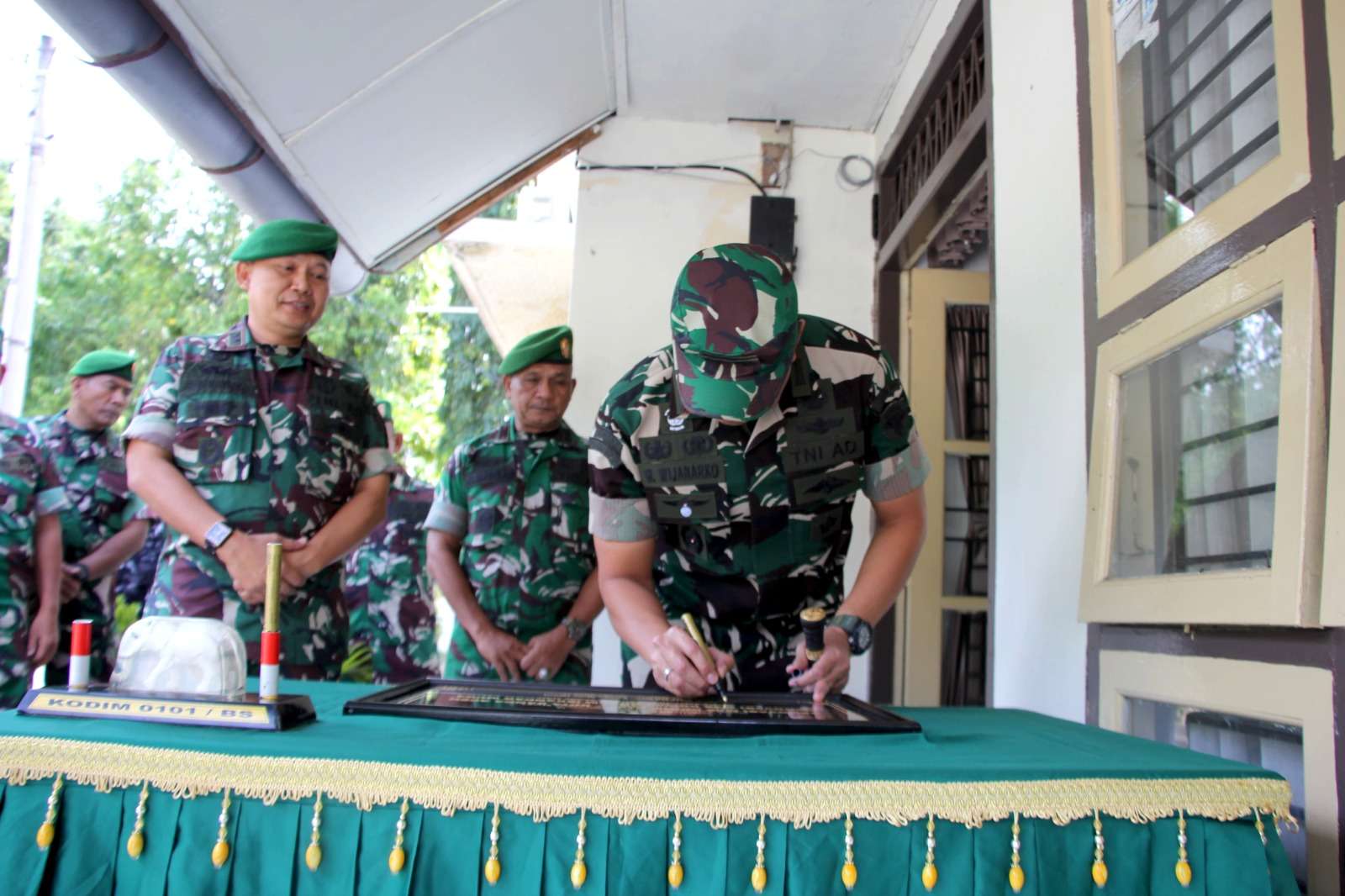 BANDA ACEH, Komandan Kodim (Dandim) 0101/Kota Banda Aceh, Kolonel Czi Widya Wijanarko S.Sos MTr (Han), meresmikan hasil renovasi dua bangunan strategis, di Mess Darmawangsa Kodim 0101/KBA, Jalan STA Mahmudsyah, Gampong Baru, Kecamatan Baiturrahman, Kota Banda Aceh, Jum’at (17/1/2025).