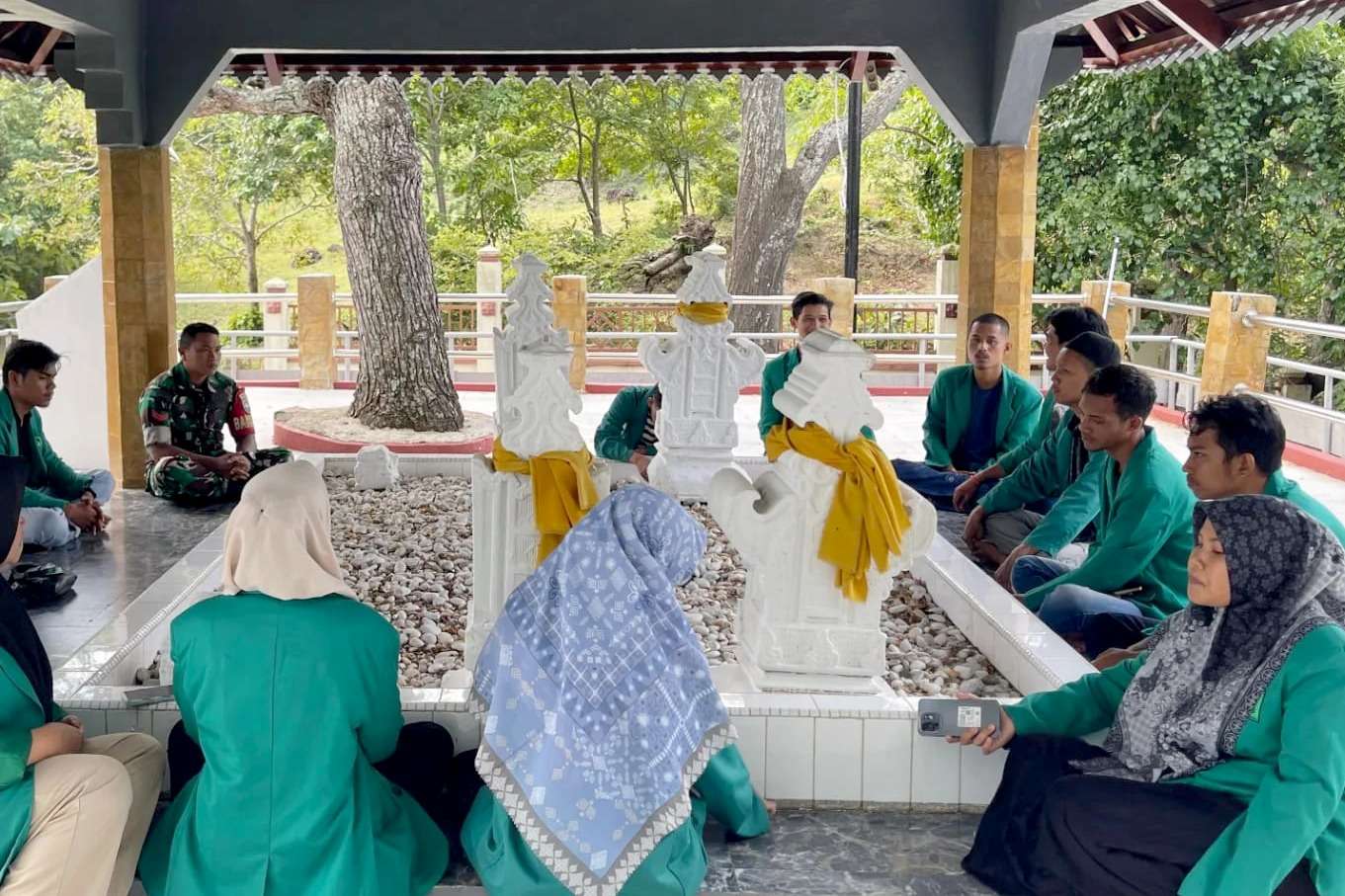 Usai kegiatan bersih bersih tersebut, dilanjutkan dengan doa bersama dan duduk mengelilingi makam dengan suasana penuh khidmat memanjatkan doa mengenang jasa- jasa Laksamana Keumalahayati.