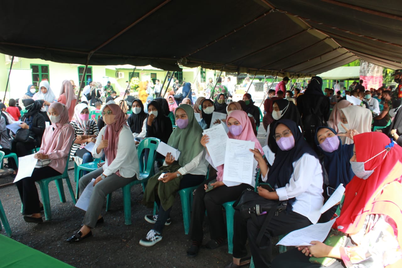 APJN.net – Banda Aceh | Dalam rangka program percepatan vaksinisasi guna untuk menciptakan kekebalan (herd immunty) dari wabah Covid-19, Kodim 0101/Aceh Besar, menggelar serbuan vaksinasi di Aula Makodim 0101/Aceh Besar, Jalan STA Mahmud Syah, nomor 32, Kampung Baru Kecamatan Baiturrahman Banda Aceh, (28/6/2021).
