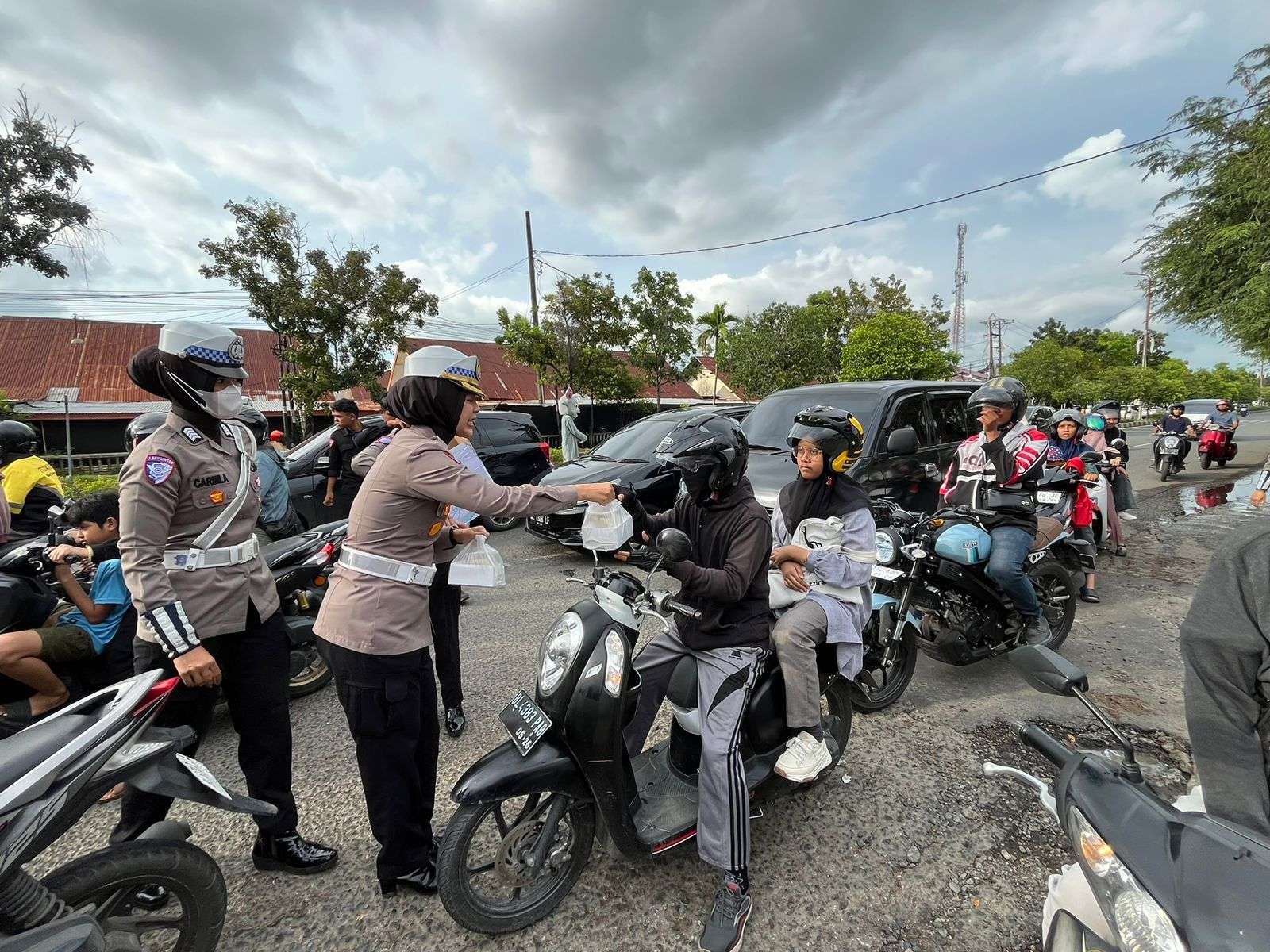 BANDA ACEH, Personel Direktorat Lalu Lintas (Ditlantas) Polda Aceh menggelar aksi sosial dengan membagikan takjil kepada para pengendara yang melintas di sejumlah titik di Kota Banda Aceh, Senin, 10 Maret 2025. Kegiatan ini merupakan bagian dari upaya kepolisian dalam mendekatkan diri kepada masyarakat serta berbagi kebahagiaan di bulan suci Ramadan.