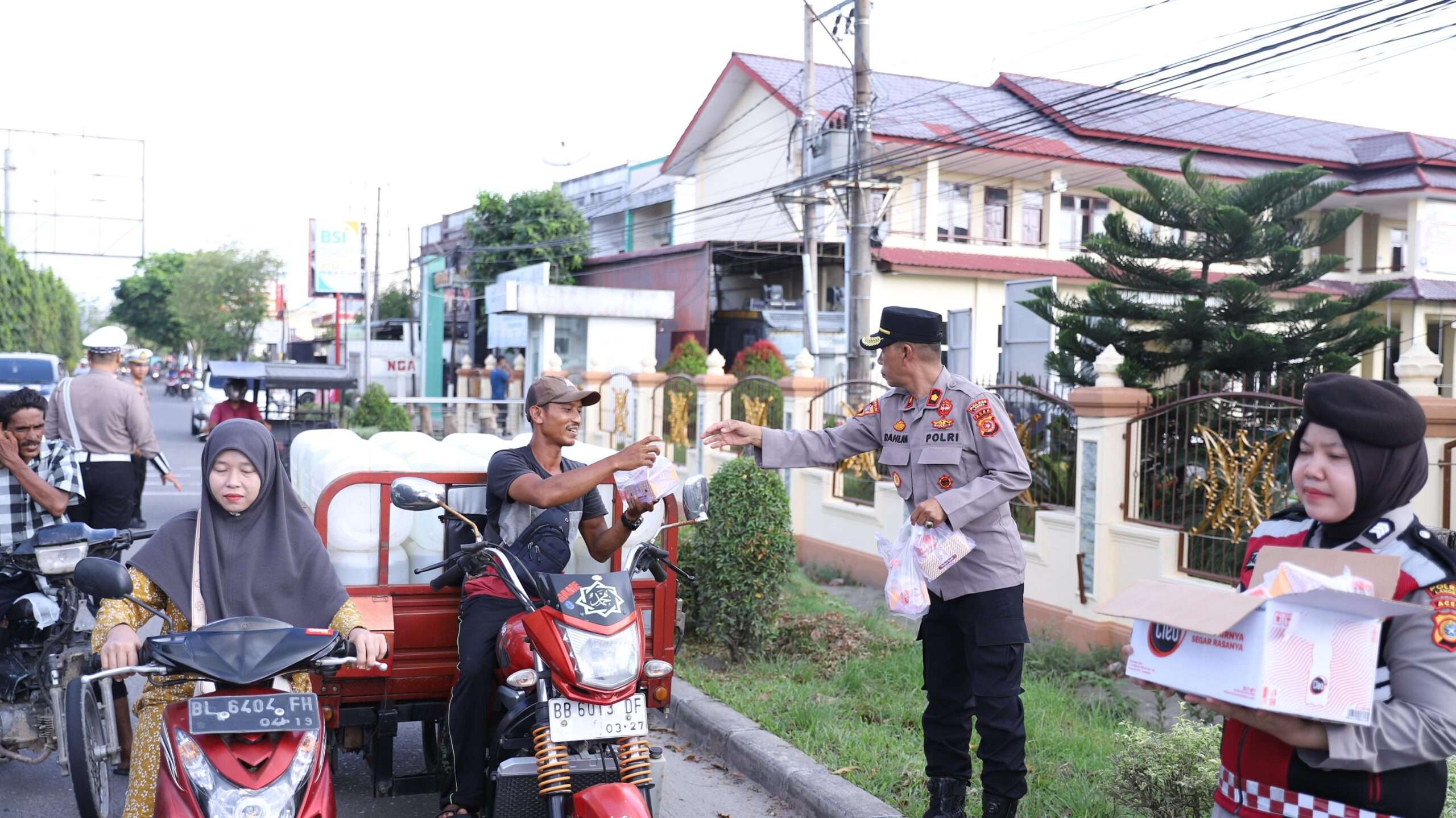 LANGSA, Kapolres Langsa AKBP Andy Rahmansyah SH, SIK, MH, memimpin pembagian 200 paket takjil kepada mahasiswa dan masyarakat kurang mampu, Senin (10/3/ 2025).