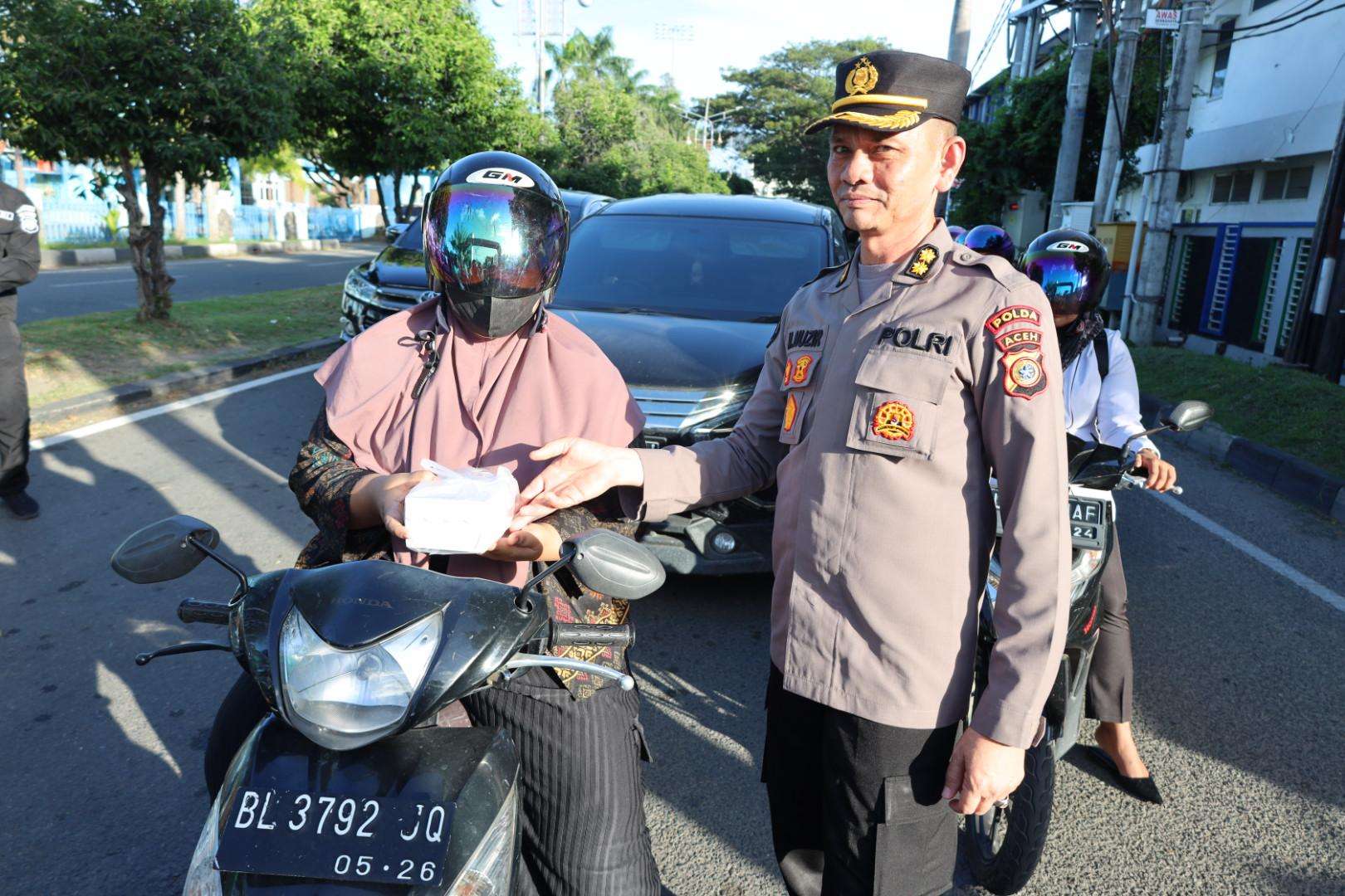 Bidhumas Polda Aceh Bagikan Takjil kepada Pengendara