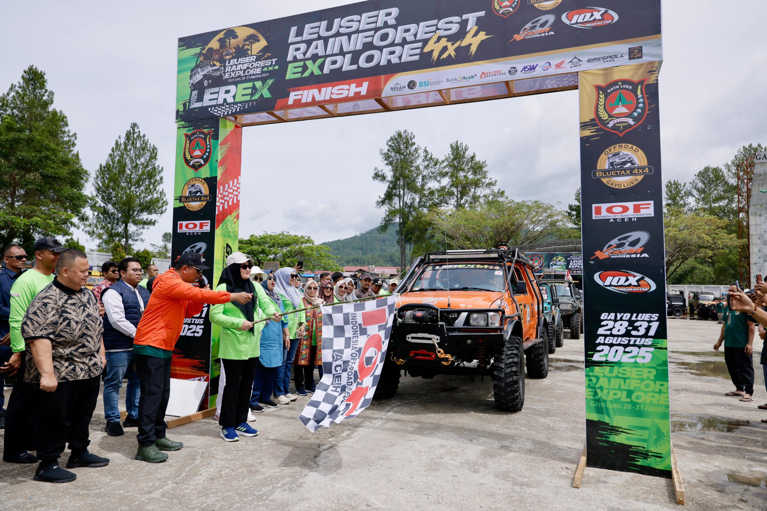 GAYO LUES– Ketua TP-PKK Aceh, Marlina Usman akrab disapa Kak Na, secara resmi melepas Tim Leuser Rainforest Explore 4×4 (LEREX) di Stadion Seribu Bukit, Kecamatan Blangkejeren, Gayo Lues, Kamis (28/8/2025).