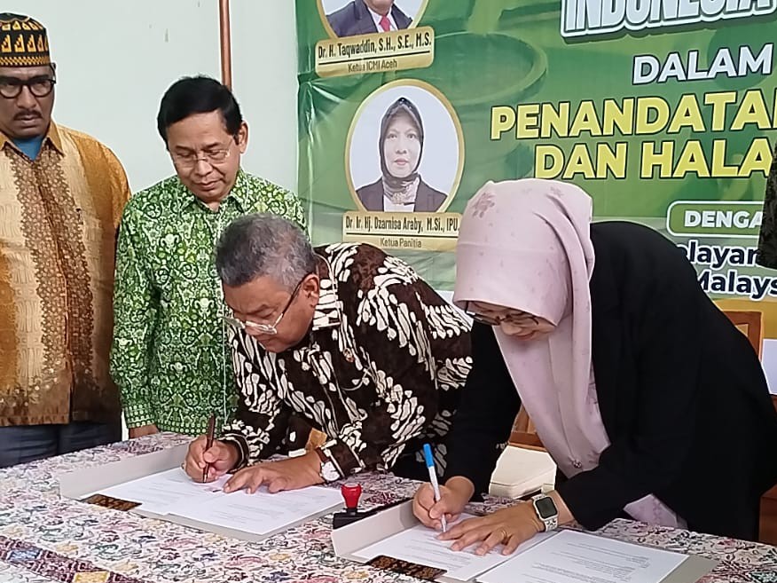 BANDA ACEH – Ketua ICMI Aceh, Dr Taqwaddin Husin dan Perwakilan Tawakkal Specialist Hospital, dr Natalina tandatangani kerjasama (MoU) perihal Pelayanan Kesehatan di Kuala Village Resto, Banda Aceh, Jumat (17/4/2026) pagi.