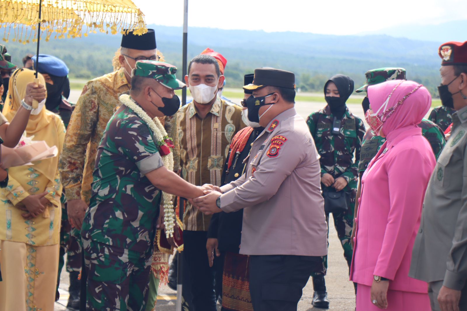 APJN.NET- BANDA ACEH- Wakapolda Aceh Brigjen Pol. Dr. Drs. H. Agus Kurniady Sutisna, M. M., M. H, turut menyambut kadatangan KSAD Jenderal TNI Dudung Abdurachman, S. E., M. M, yang berkunjung ke Aceh, di Bandara SIM Blang Bintang, Aceh Besar, Kamis (10/3/22).