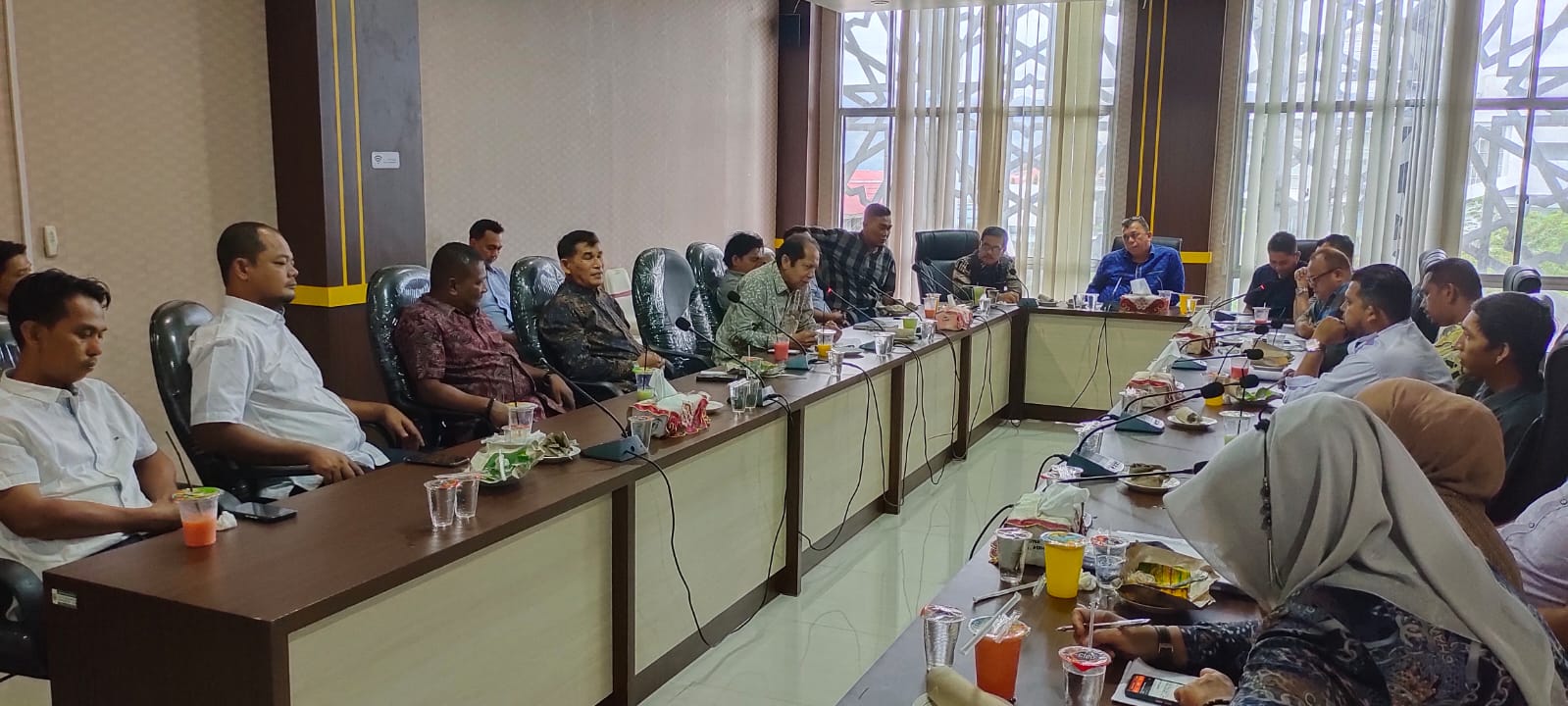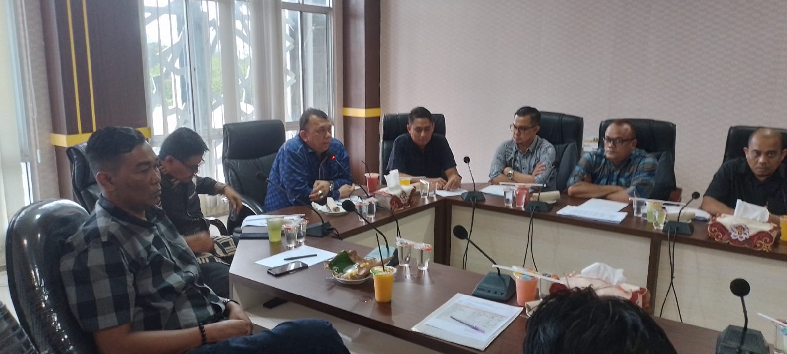 APJN.NET- BANDA ACEH – Ketua Komisi II DPRK Banda Aceh H Heri Julius, S.Sos MM, pimpin rapat dan silaturahmi dengan seluruh pengelola pasar di kota Banda Aceh, di ruang pertemuan, Jumat (22/7/2022). [ Dok Sanusi R]