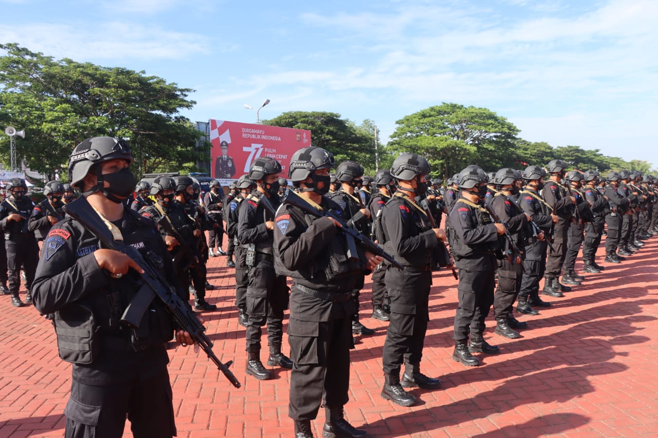 APJN.NET- BANDA ACEH- Menjelang Hari Perdamaian Aceh yang ke 17, Senin, 15 Agustus 2022, Polda Aceh menggelar apel pasukan di Lapangan Mapolda Aceh, Minggu pagi, (14/8/ 2022).