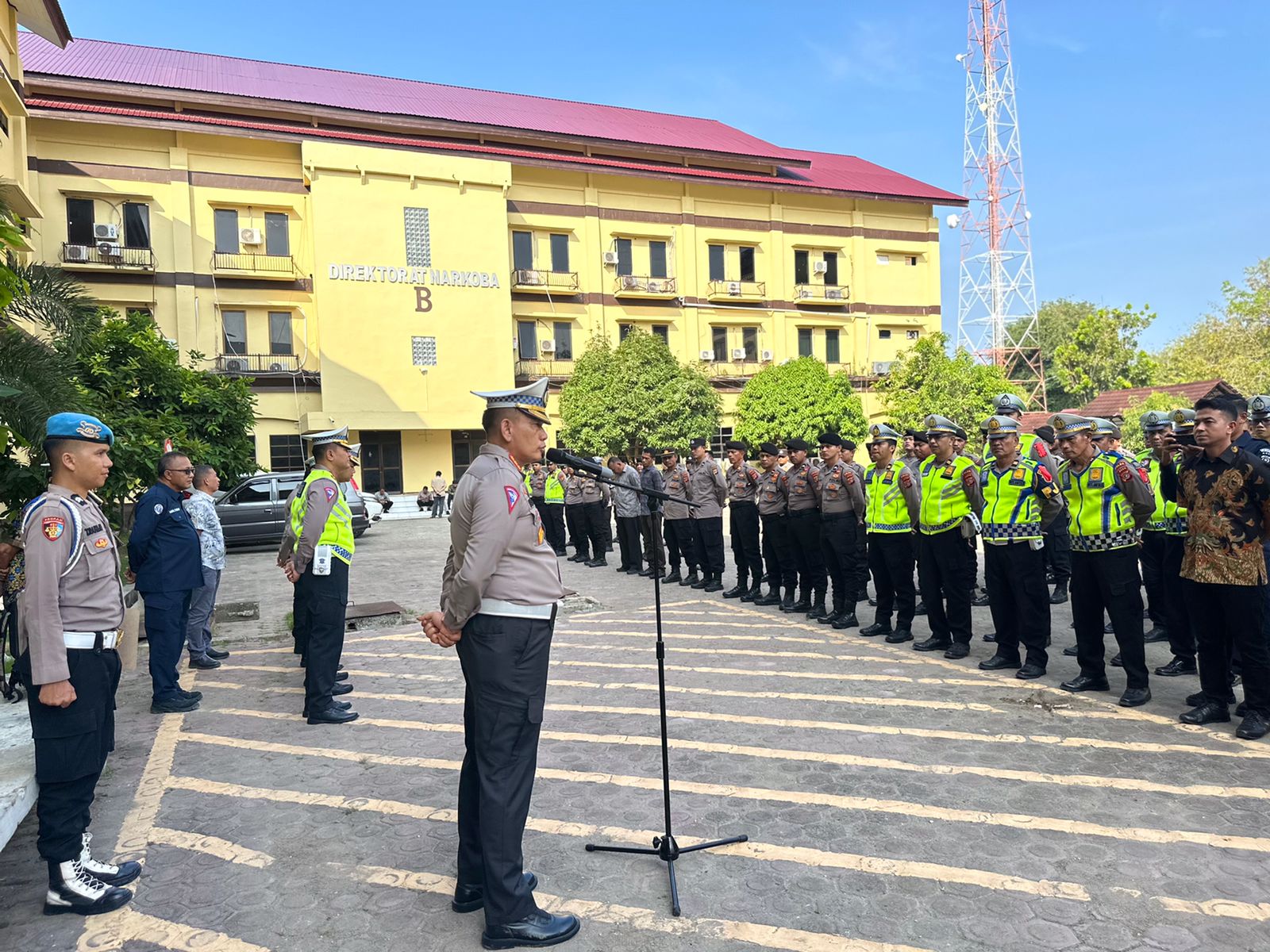 Dirlantas Polda Aceh saat memimpin apel pagi di hari ketiga pelaksanaan Operasi Ketupat Seulawah 2024 di wilayah Provinsi Aceh, diantaranya berharap agar personel yang terlibat dalam operasi tersebut dapat melaksanakan tugasnya dengan profesional untuk memberikan pengamanan dan pelayanan terbaik kepada masyarakat yang merayakan Idul Fitri 1445 H, liburan dan mudik dalam rangka lebaran, sehingga benar-benar terwujud rasa aman dan nyaman bagi masyarakat dalam merayakan Lebaran serta mewujudkan mudik ceria dan penuh makna.