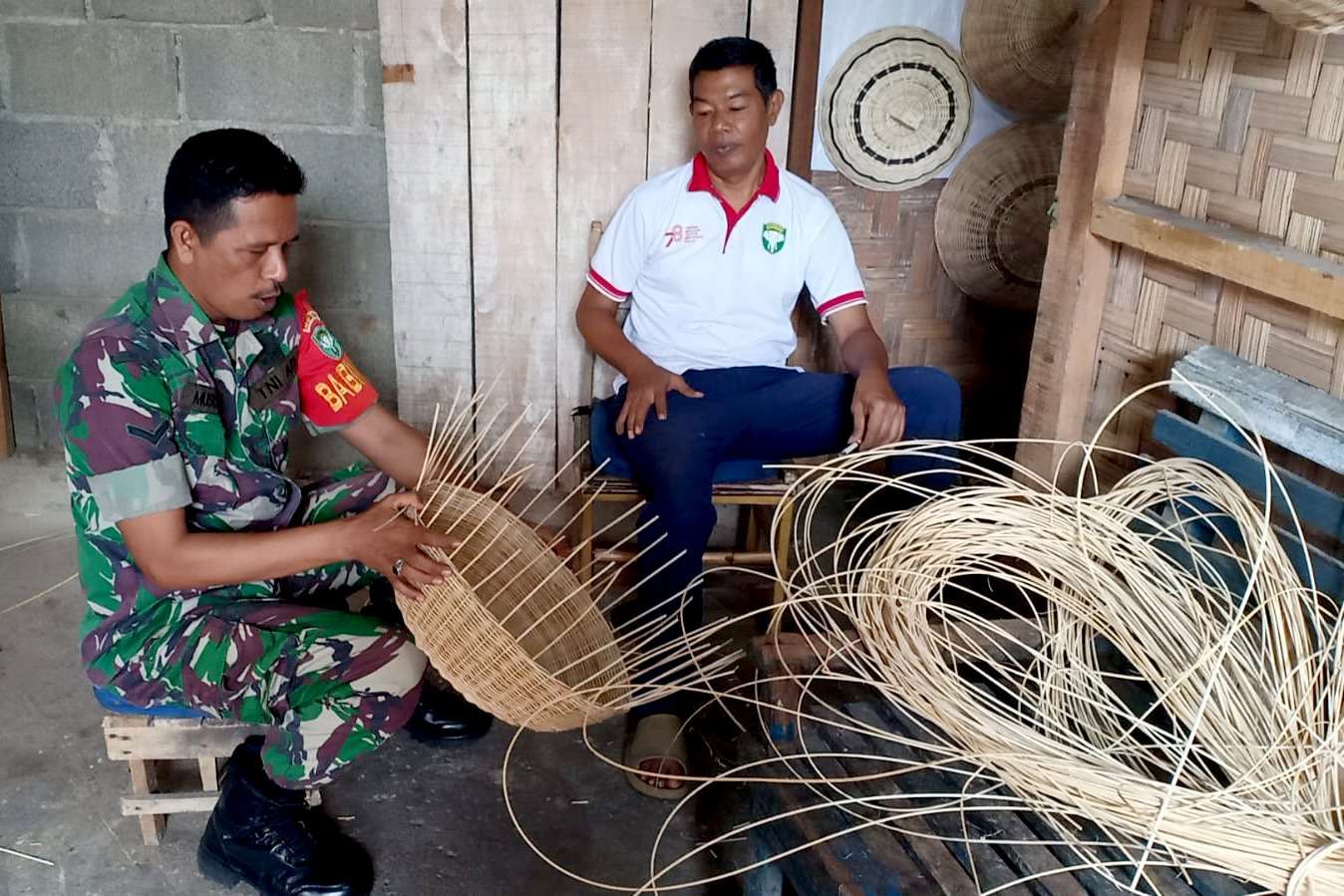 Kedatangan Serda Muslihuddin bukan hanya sekadar kunjungan biasa. Dengan penuh semangat, ia turut membantu proses pembuatan produk rotan, mulai dari menganyam hingga merapikan hasil akhir. Hal ini pun mendapat sambutan hangat dari Bapak Darwin dan para pekerja di tempat usaha tersebut.