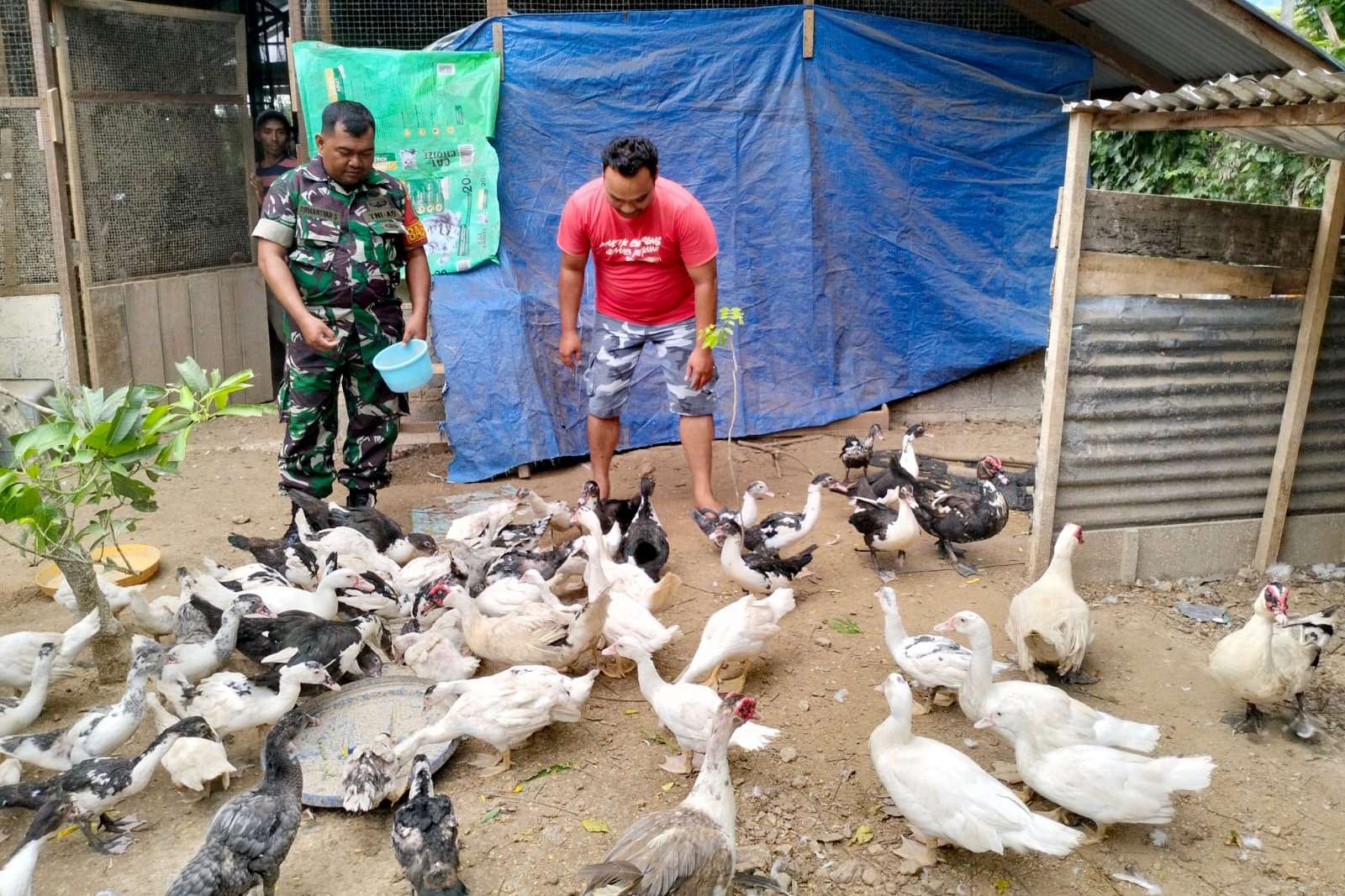 Siang itu, di tengah suasana sejuk khas pedesaan, Serda Firmansyah menyambangi kandang bebek entok milik Faisal. Tak sekadar berkunjung, ia juga ikut memberikan pakan ternak bersama sang pemilik. Dengan penuh perhatian, Babinsa tersebut memperhatikan bagaimana cara memberi makan yang baik serta kondisi kandang yang dijaga kebersihannya.