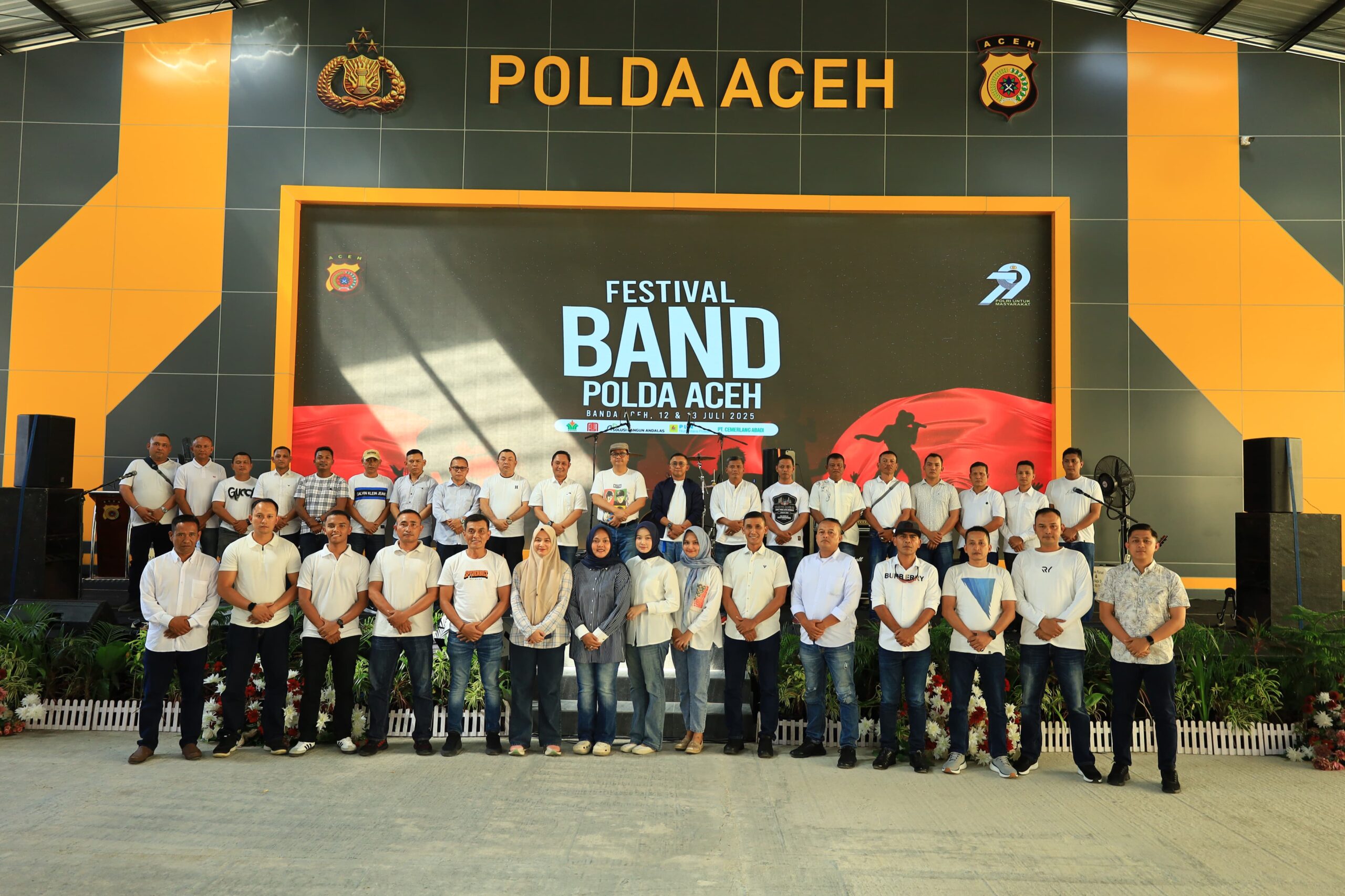 BANDA ACEH — Kapolda Aceh Irjen Pol. Dr. Achmad Kartiko secara resmi menutup Festival Band dalam rangka peringatan Hari Bhayangkara ke-79 yang telah berlangsung selama dua hari di Gedung Meuligoe Tribrata, Mapolda Aceh, Minggu, 13 Juli 2025.
