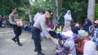 Pengamanan Aksi Unjuk Rasa di PT PAG, Polisi Berbagi Air Mineral Kepada Pengunjuk Rasa