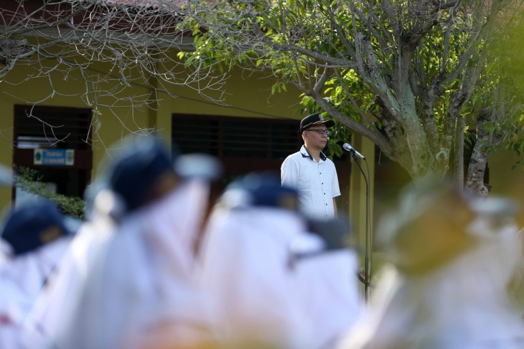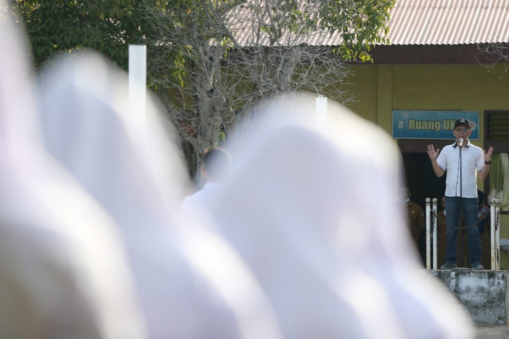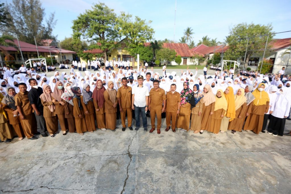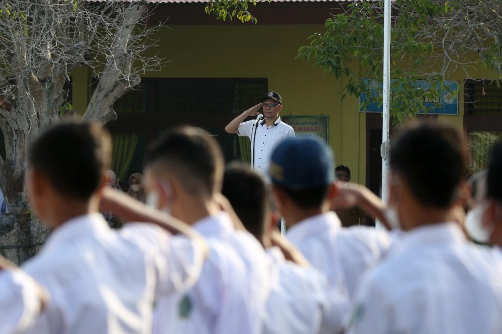 APJN.NET- Banda Aceh – Ketua Komisi I DPRK Banda Aceh, Musriadi Aswad, menjadi pembina upacara bendera di SMP Negeri 10 Banda Aceh di Jalan Poteumereuhom, Kuta Alam, Kecamatan Kuta Alam, Senin (14/2/2022).