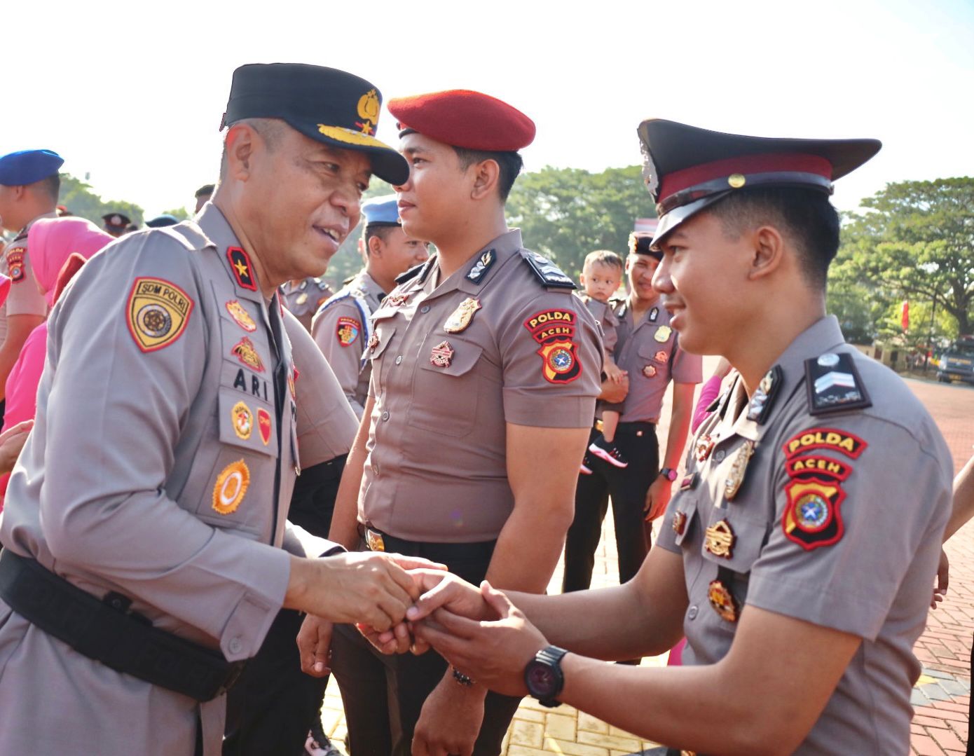 “Hari ini, 382 personel Polda Aceh dan 904 personel dari polres jajaran memperoleh kenaikan pangkat. Ini merupakan bentuk penghargaan dari negara atas dedikasi, integritas, serta pengabdian yang telah ditunjukkan dalam menjalankan tugas sebagai anggota Polri,” kata Wakapolda Aceh Brigjen Ari Wahyu Widodo, saat memimpin upacara laporan kenaikan pangkat di Mapolda Aceh, Senin, 30 Juni 2025.